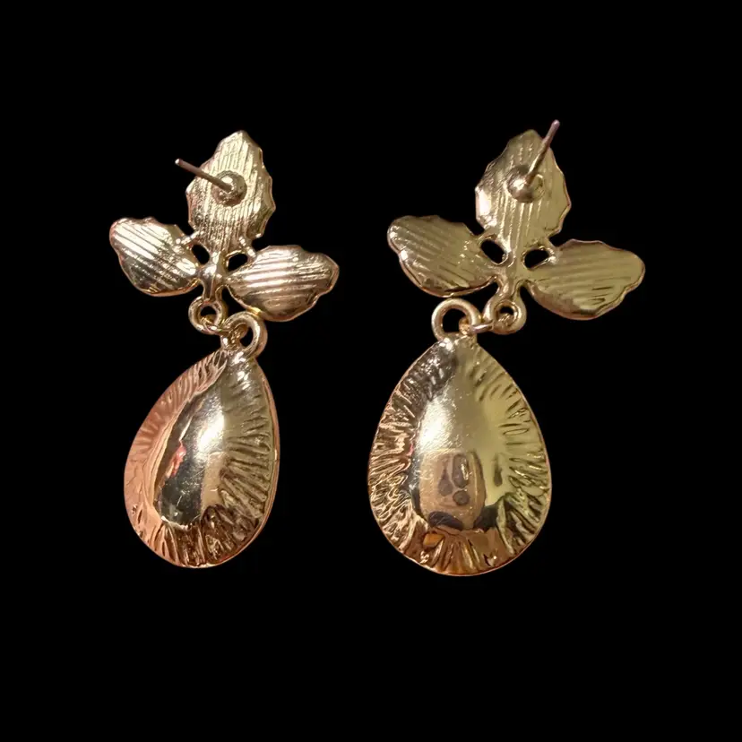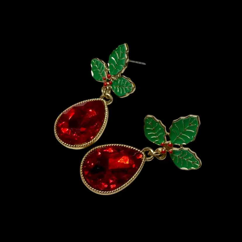 7/8”x1.75”. Festive gold tone earrings, featuring enamel holly berries & teardrop shaped red stones. For pierced ears. Not marked, unsure of brand or age. NOTE comes with mismatched post backings, which are used and not in the best condition. I’d suggest replacing them!