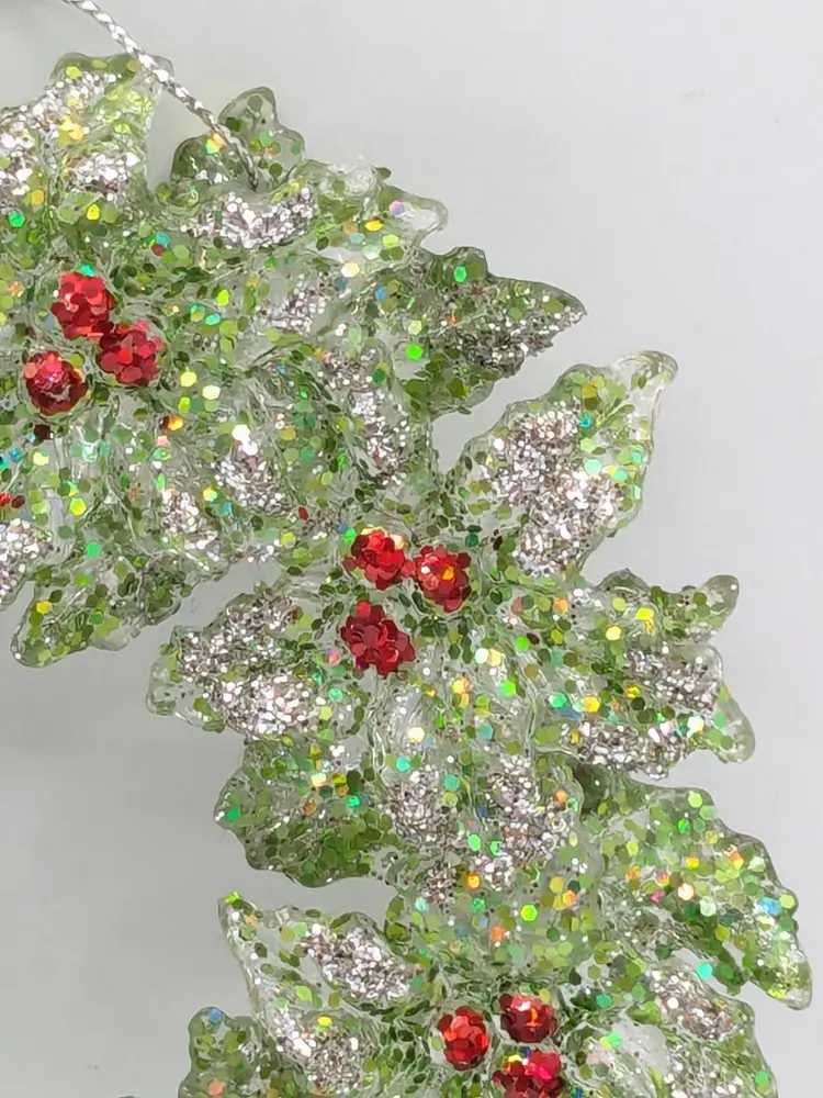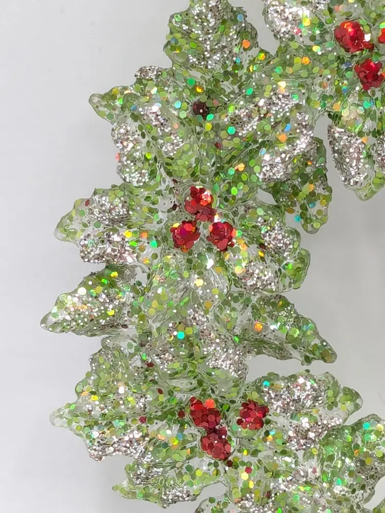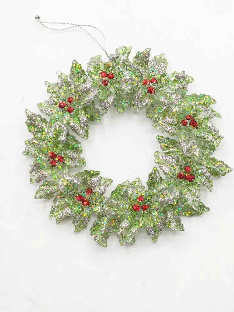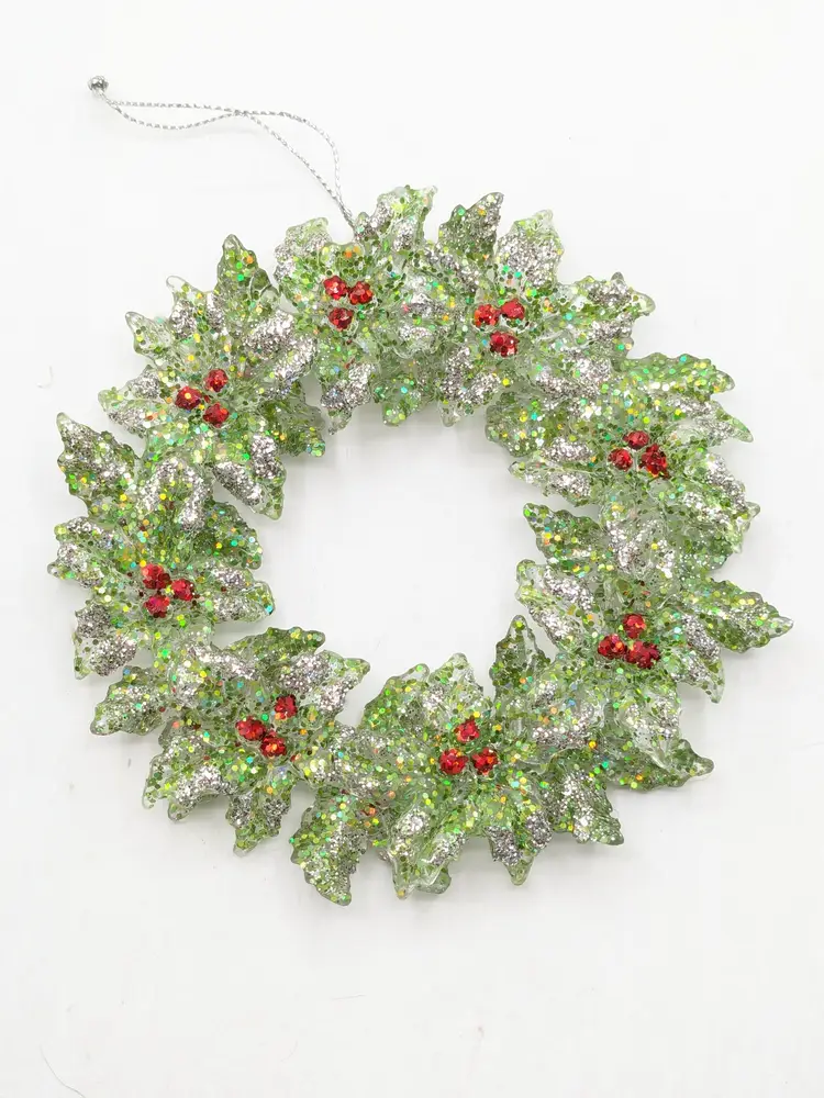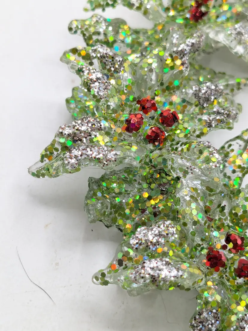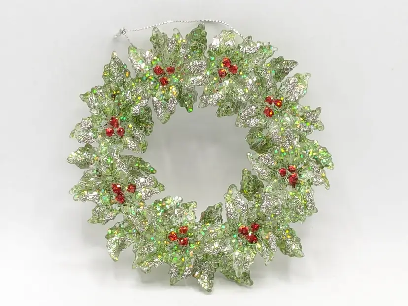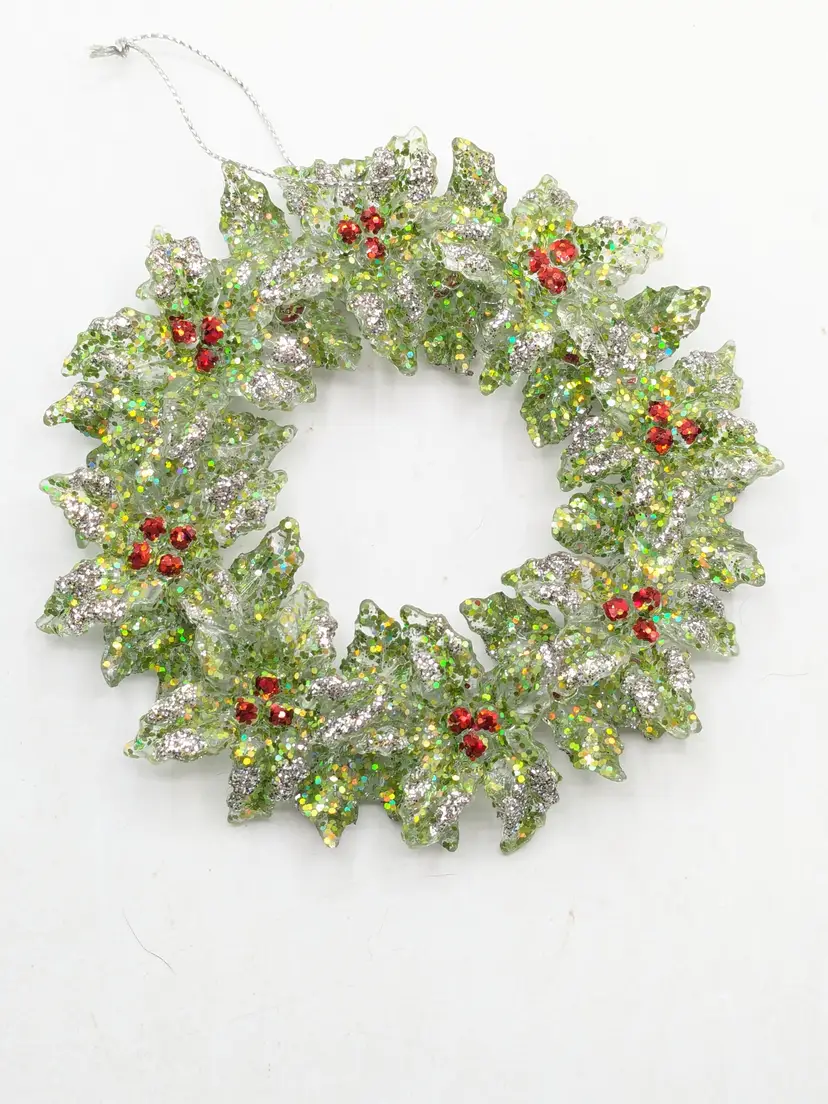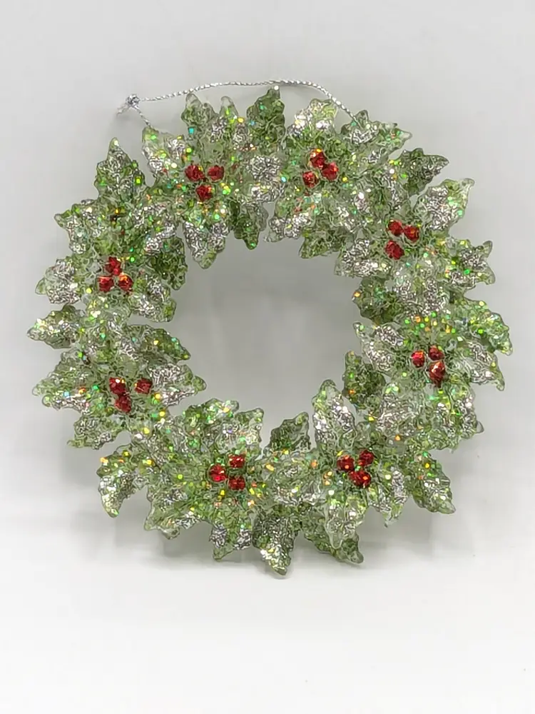Good condition. Acrylic wreath. Very sparkly. Glitter does not shed. Measures 5". ENS