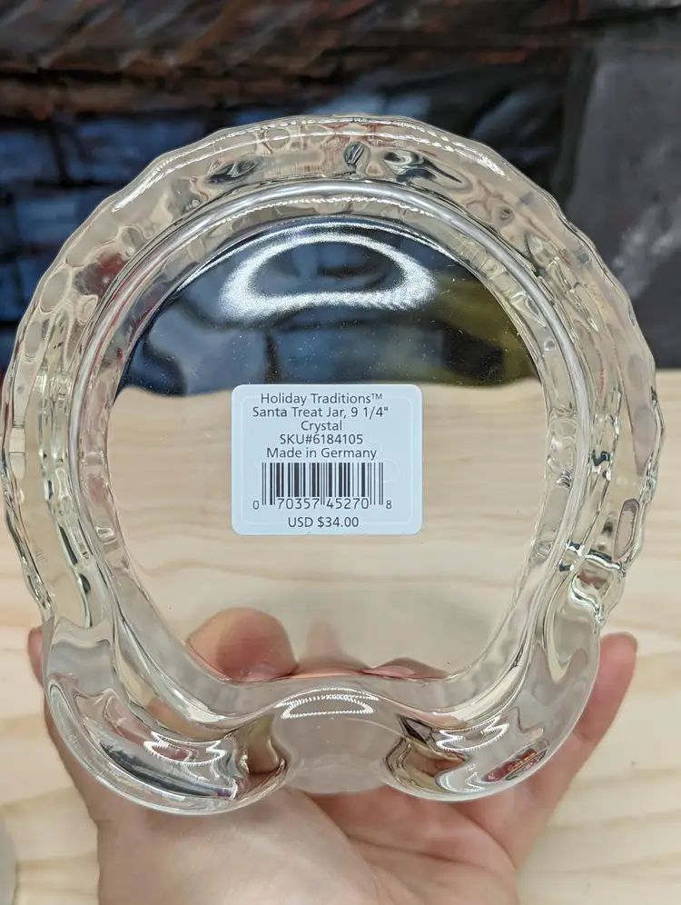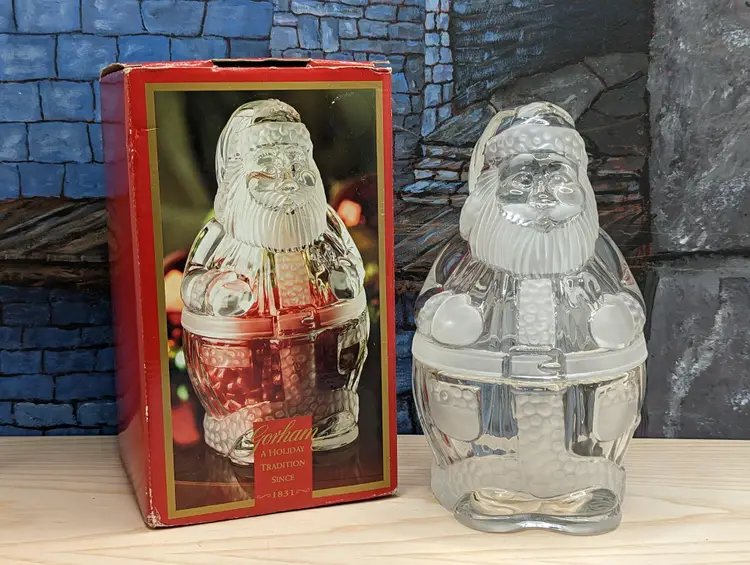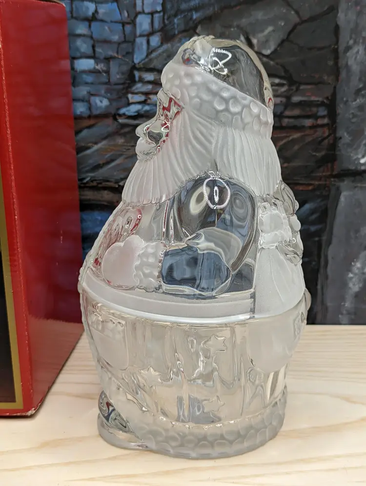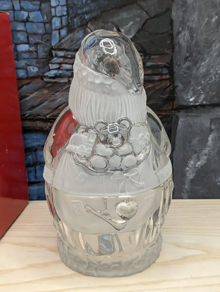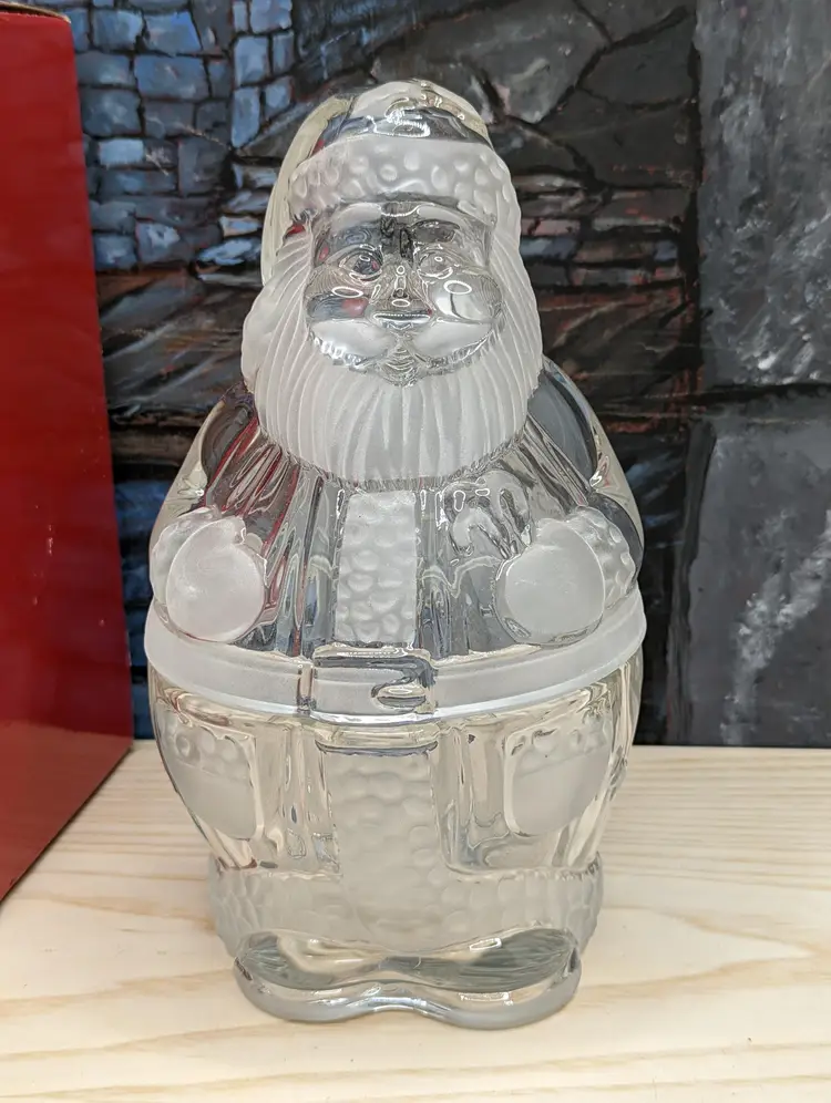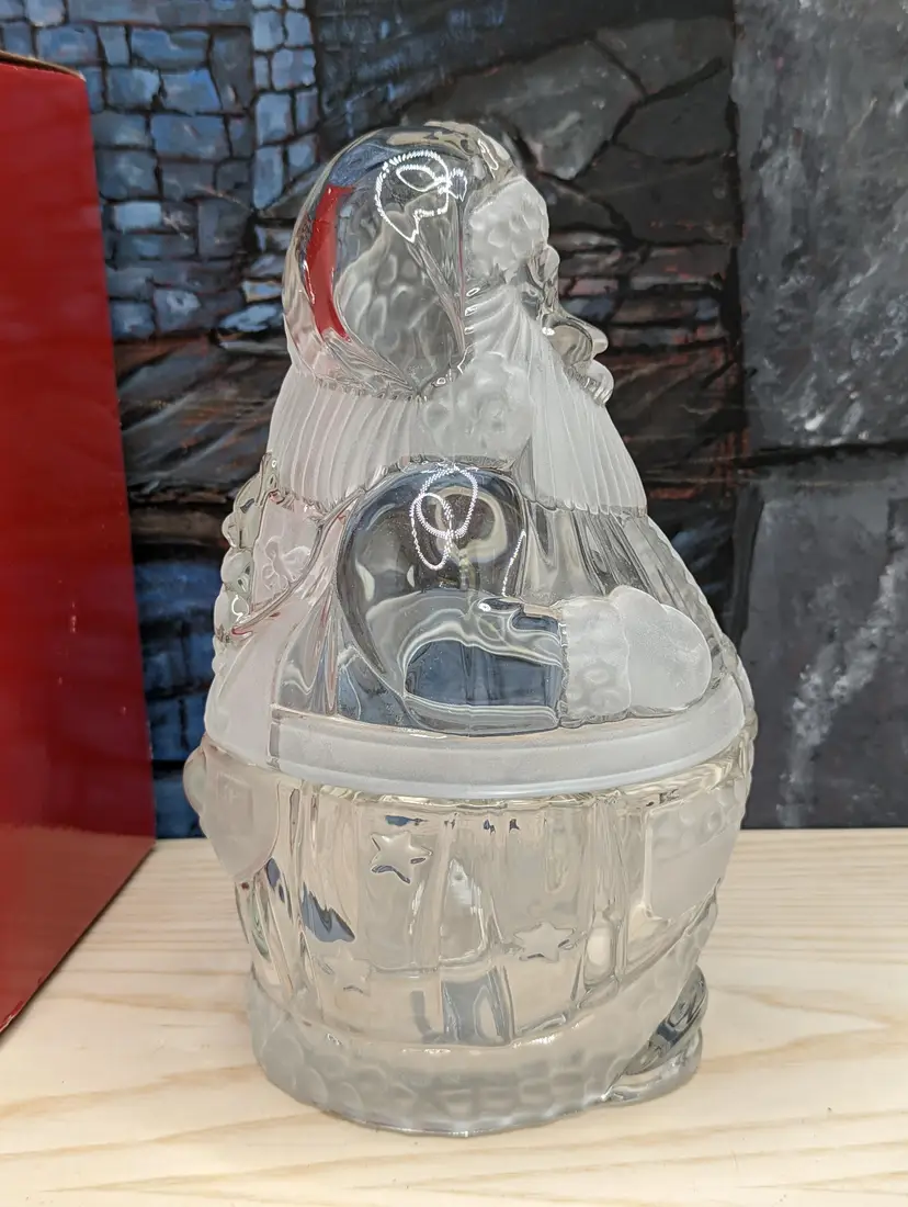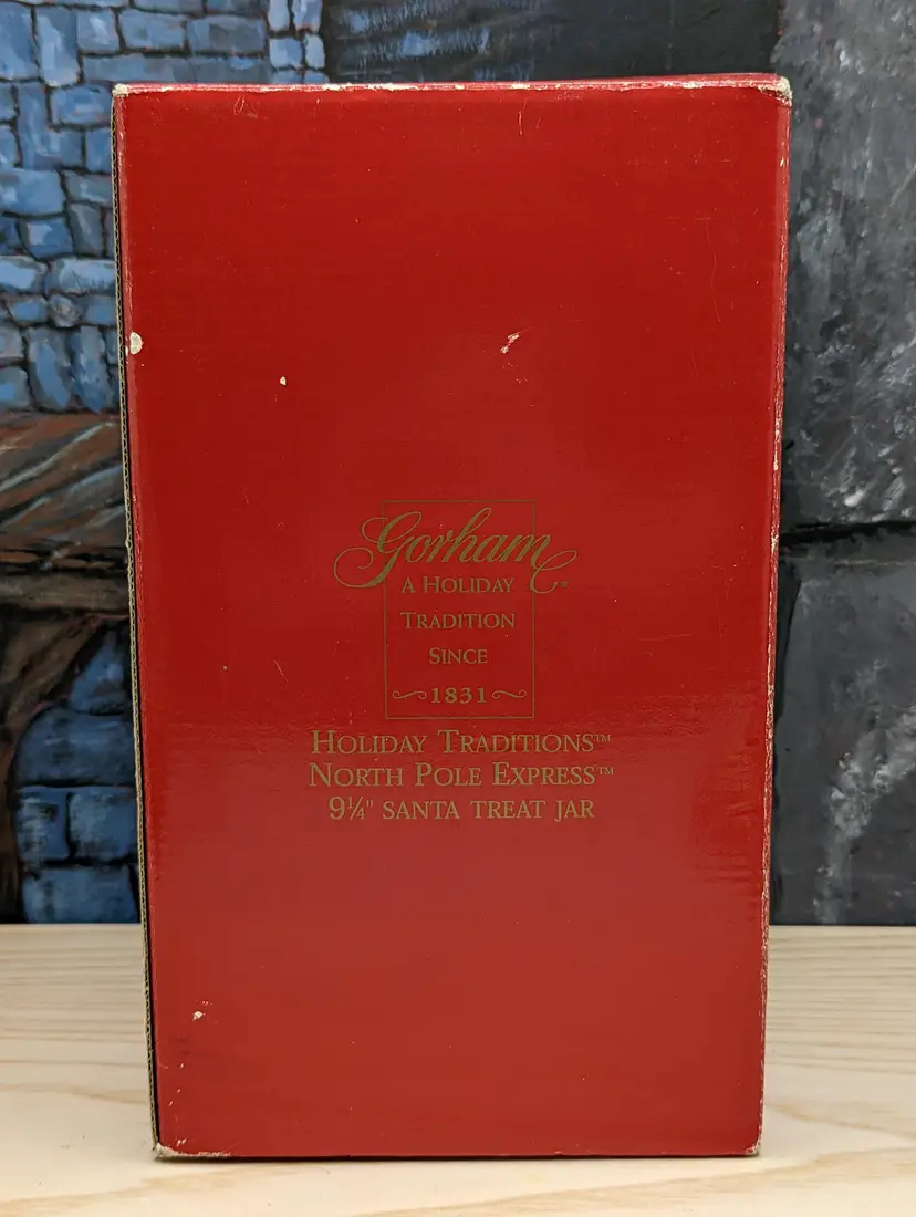 GORHAM North Pole Express SANTA TREAT JAR Cookie jar , Candy frosted crystal glass 9 1/4" GERMANY. Holiday Traditions Santa Treat Jar made in Germany. Unused gift in original box in excellent condition as pictured. Box has some minor wear as pictured. Check the photos for details.Comes from a smoke free home.