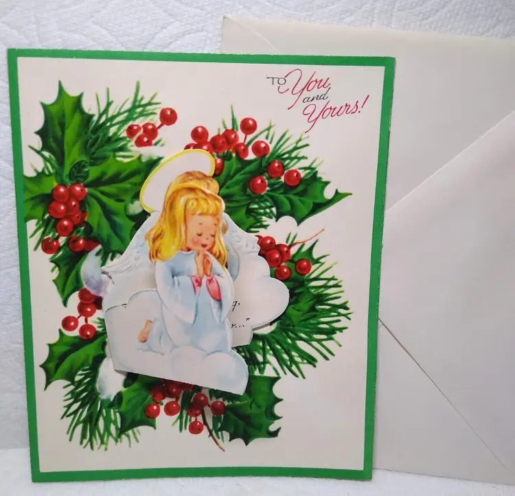 Style: Greeting Card Theme: Christmas Time Period Manufactured: 1940-59 Country/Region of Manufacture: Unknown Modified Item: No Vintage: Christmas Card