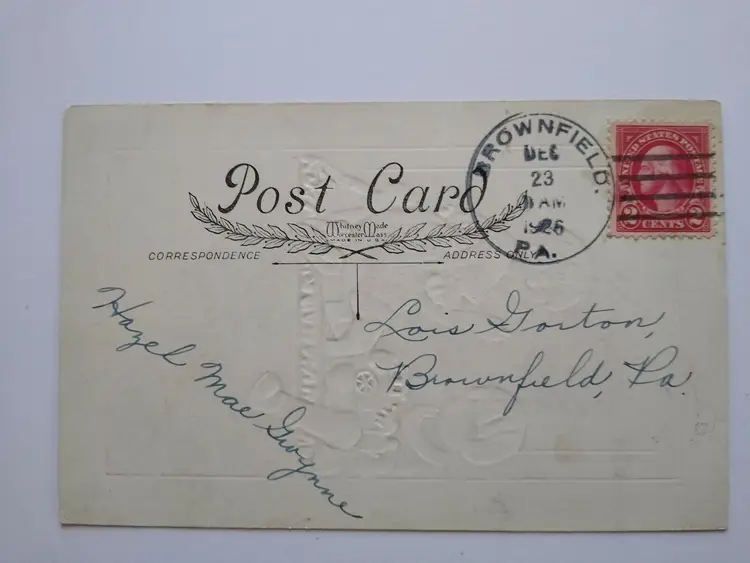 Unit of Sale: Single Unit Era: Pre-War (Pre-1914) Original/Licensed Reprint: Original Occasion: Christmas Postage Condition: Yes Features: Embossed, Divided Back Subject: Artist Material: Paper Theme: Fantasy, Art, Holiday, Greetings Time Period Manufactured: 1900-1919 Type: Printed (Lithograph) Artist: Unknown Custom Bundle: No Size: Standard (5.5 x 3.5 in) Country/Region of Manufacture: Unknown Brand/Publisher: Unknown Number of Items in Set: 1 Year Manufactured: 1910