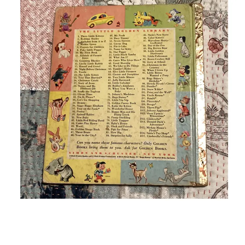 This first edition Little Golden Book is a great find!! There is some damage to the front cover (see pictures) and the corners. The inside pages are in great condition except for a name written on the title page.