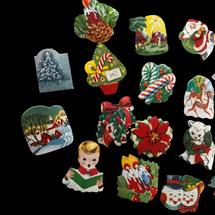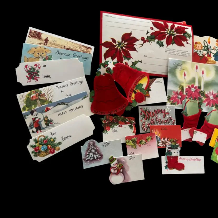 Fabulous vintage Christmas tags and seals. Various sizes and designs. In overall good condition