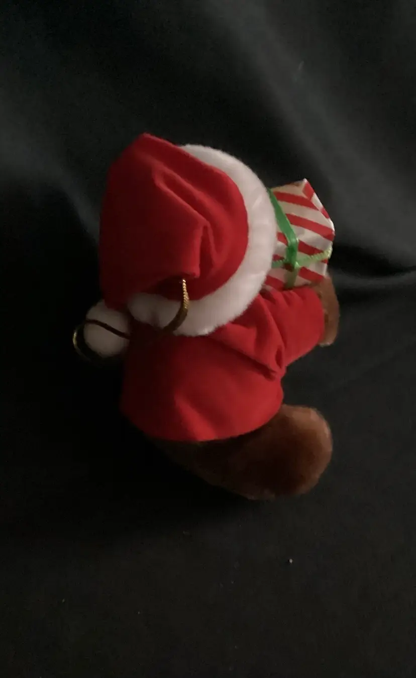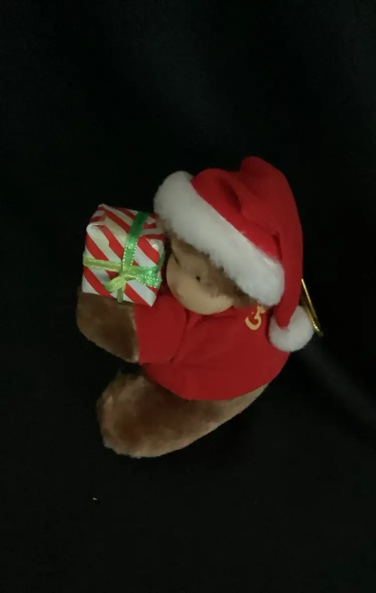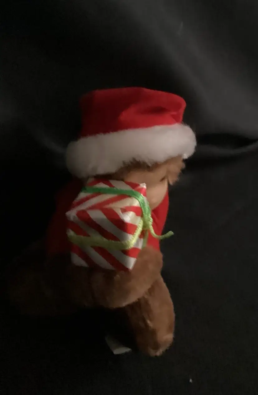Vintage Christmas monkey made of fabric, velvet & wood or wood like head - gold hangar cord