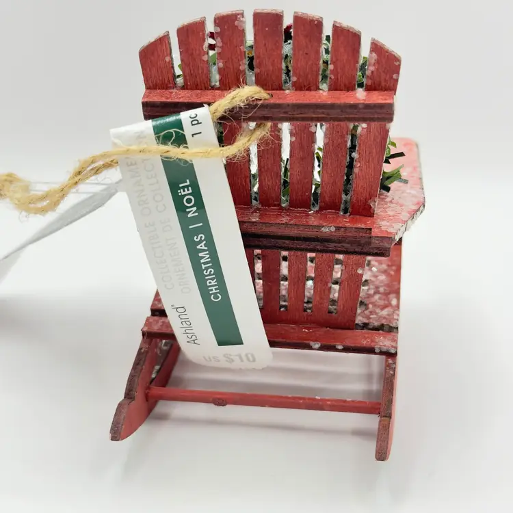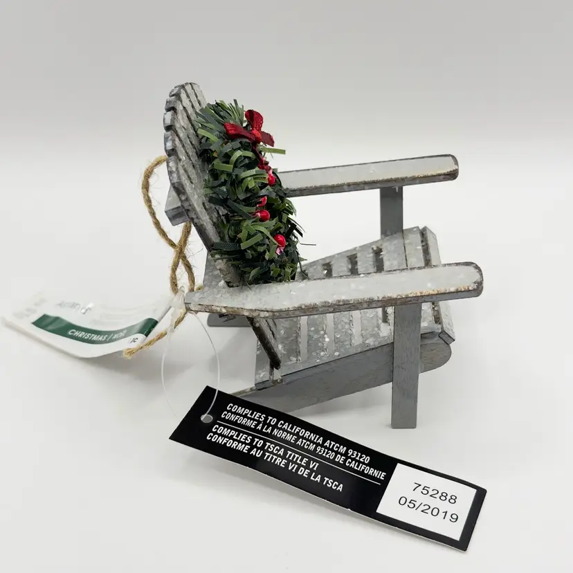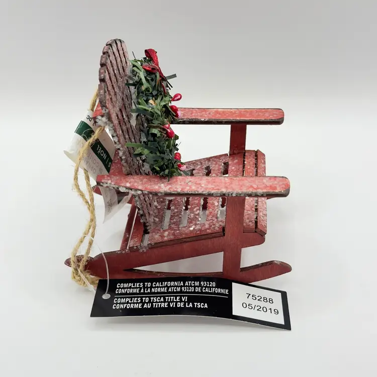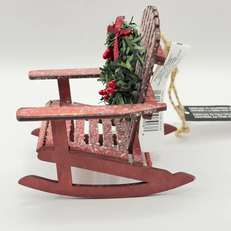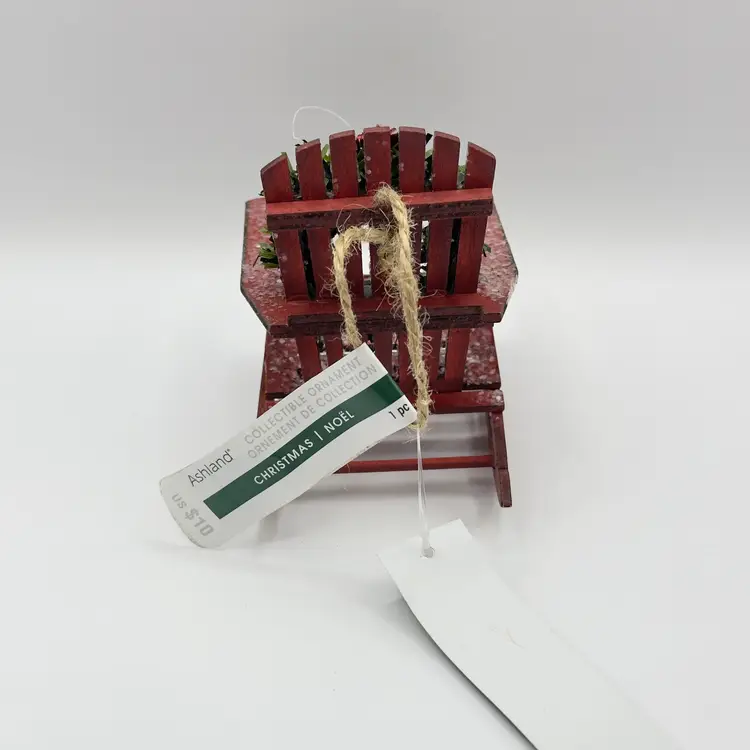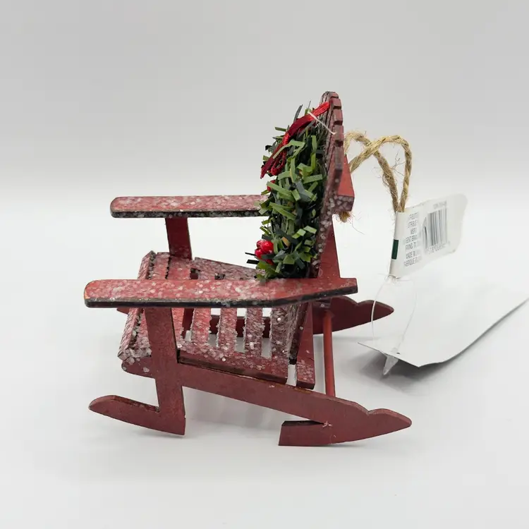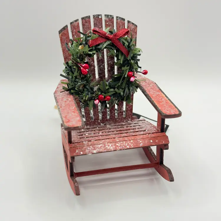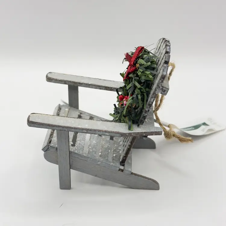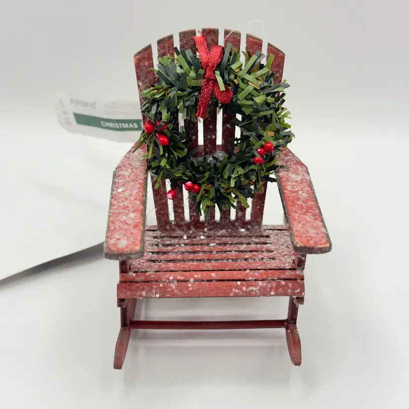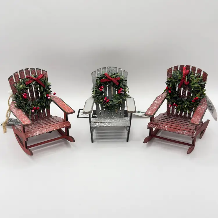 Add a touch of rustic charm to your holiday decor with this set of 3 miniature wood Adirondack chair ornaments. Each chair is adorned with a festive wreath, perfect for bringing a cozy, cabin feel to your Christmas tree. Ideal for collectors or as a unique gift. Excellent condition. Measures 2.75x4 inches. Weighs 10oz.
