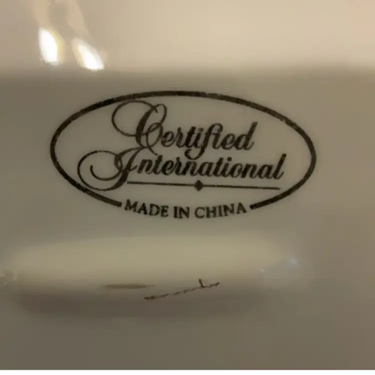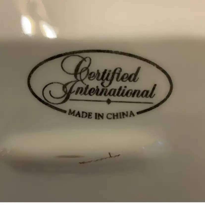 Certified International square Christmas Poinsettia Platter. Perfect for your Christmas gathering made of ceramic features rich black, red, green, and gold colors. Measures all the way around at 10”. No chips or cracks.