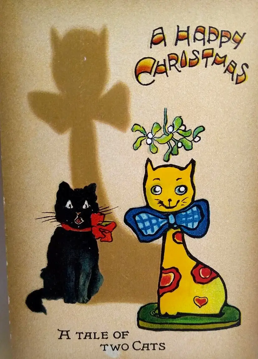 Number of Items in Set: 1 Unit of Sale: Single Unit Artist: M.L. Attwell Occasion: Christmas Size: Standard (5.5 x 3.5 in) Signed: No Custom Bundle: No Year Manufactured: 1910 Material: Paper Original/Licensed Reprint: Original Franchise: Tucks Brand/Publisher: Raphael Tuck & Sons Subject: Shadow Personalize: No Type: Printed (Lithograph) Era: Pre-War (Pre-1914) Theme: Art, Greetings, Holiday, Christmas Greetings, Shadow, Shadowgraph, Cats, Black Cat, Kitten Features: Divided Back, Embossed Time Period Manufactured: 1900-1919 Country/Region of Manufacture: Germany Postage Condition: Unposted