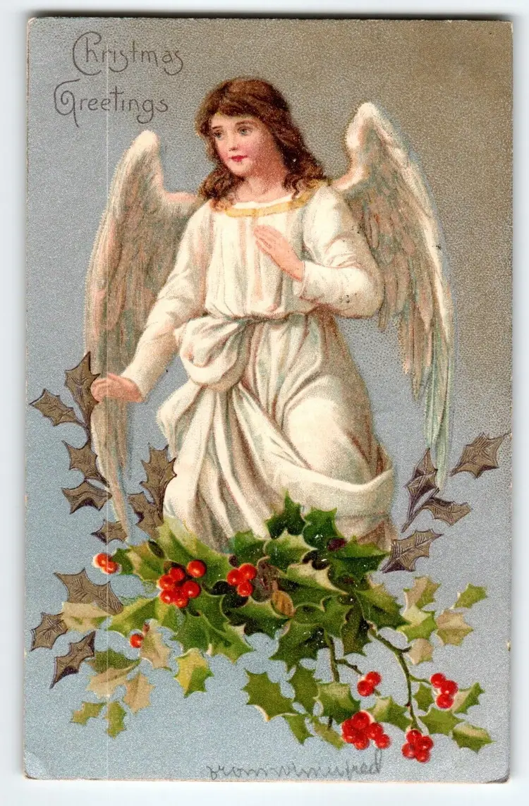 Number of Items in Set: 1 Unit of Sale: Single Unit Artist: Unknown Occasion: Christmas Size: Standard (5.5 x 3.5 in) Signed: No Custom Bundle: No Material: Paper Year Manufactured: 1907 Original/Licensed Reprint: Original Brand/Publisher: Unbranded Subject: Angel Type: Printed (Lithograph) Unit Type: Unit Era: Pre-War (Pre-1914) Theme: Art, Greetings, Holiday, Religious, Holly, Angels Features: Divided Back, Undivided Back Time Period Manufactured: 1900-1919 Country/Region of Manufacture: Unknown Postage Condition: Posted