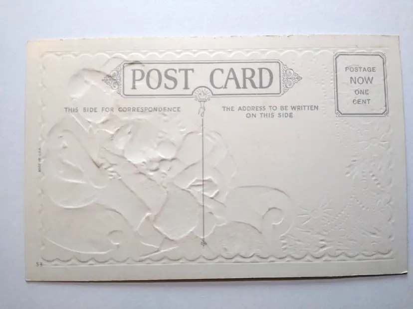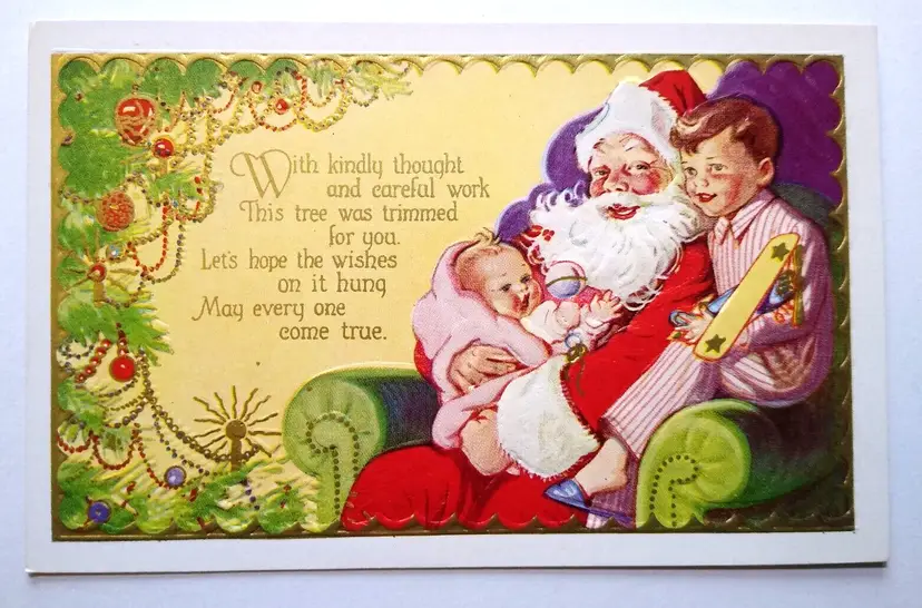 Number of Items in Set: 1 Unit of Sale: Single Unit Artist: Unknown Occasion: Christmas Size: Standard (5.5 x 3.5 in) Signed: No Custom Bundle: No Year Manufactured: 1909 Material: Paper Original/Licensed Reprint: Original Franchise: Unknown Brand/Publisher: Unbranded Subject: Santa Personalize: No Type: Printed (Lithograph) Era: Pre-War (Pre-1914) Theme: Santa Claus, Saint Nick, Art, Children & Infants, Fantasy, Greetings, Holiday, Toys & Games Features: Divided Back, Embossed Time Period Manufactured: 1900-1919 Country/Region of Manufacture: United States Postage Condition: Unposted