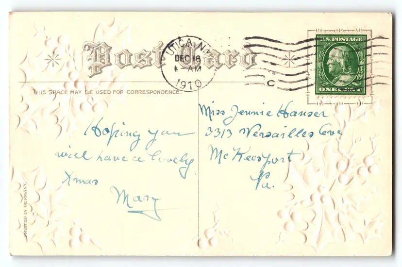 All post cards are old originals and may or may not have writing on back.