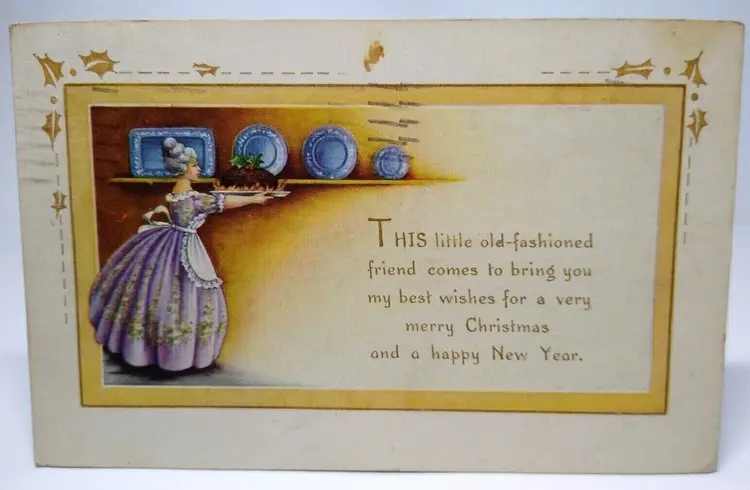 Size: Standard (5.5 x 3.5 in) Custom Bundle: No Personalize: No Type: Printed (Lithograph) Year Manufactured: 1917 Featured Person: People Number of Items in Set: 1 Signed: No Original/Licensed Reprint: Original Occasion: Christmas Time Period Manufactured: 1900-1919 Unit of Sale: Single Unit Era: White Border (1915-1930) Artist: Unknown Country/Region of Manufacture: United States Material: Paper Theme: Art, Greetings, Holiday, People, Plates, Old Fashioned Features: Divided Back, Embossed Subject: Victorian Postage Condition: Unposted Brand/Publisher: Whitney Franchise: Whitney