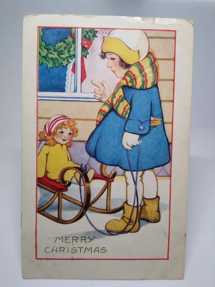 Size: Standard (5.5 x 3.5 in) Custom Bundle: No Personalize: No Type: Printed (Lithograph) Year Manufactured: 1920 Featured Person: Child Number of Items in Set: 1 Signed: No Original/Licensed Reprint: Original Occasion: Christmas Time Period Manufactured: 1900-1919 Unit of Sale: Single Unit Era: White Border (1915-1930) Artist: Unknown Country/Region of Manufacture: United States Material: Paper Theme: Art, Children & Infants, Greetings, Holiday, Doll, Sled Features: Divided Back, Embossed Subject: Children Postage Condition: Posted Brand/Publisher: Whitney Franchise: Whitney