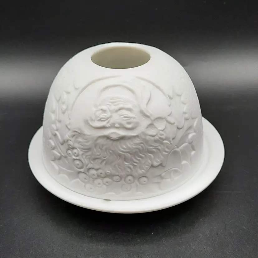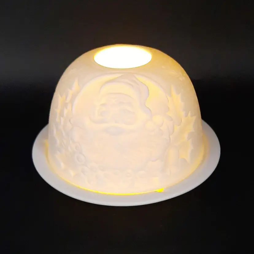 This beautiful Santa Lithophane fairy lamp is 3 1/2"H x 4 1/2"W at base and in excellent condition!