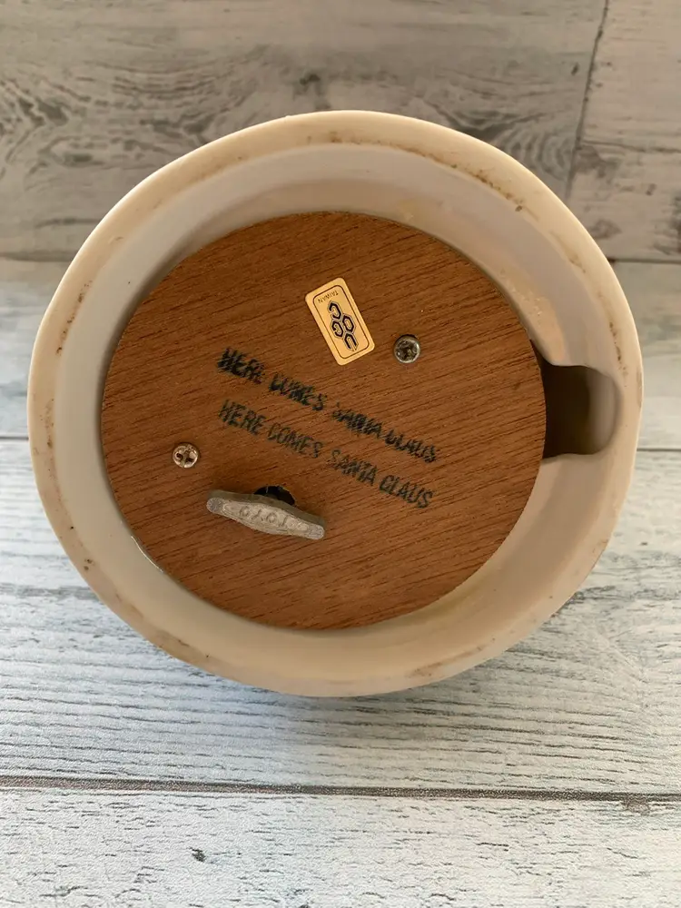 Mouse comes out of stocking, plays here comes Santa Claus Approximately 6-1/2”x 4”