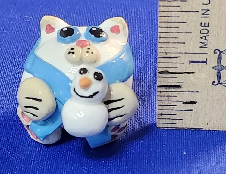 The size of each cat varies. I’ve included a picture of each cat with a ruler so that you can get an idea of each cat’s size. Generally, the cats range between 1 and 2 inches tall.