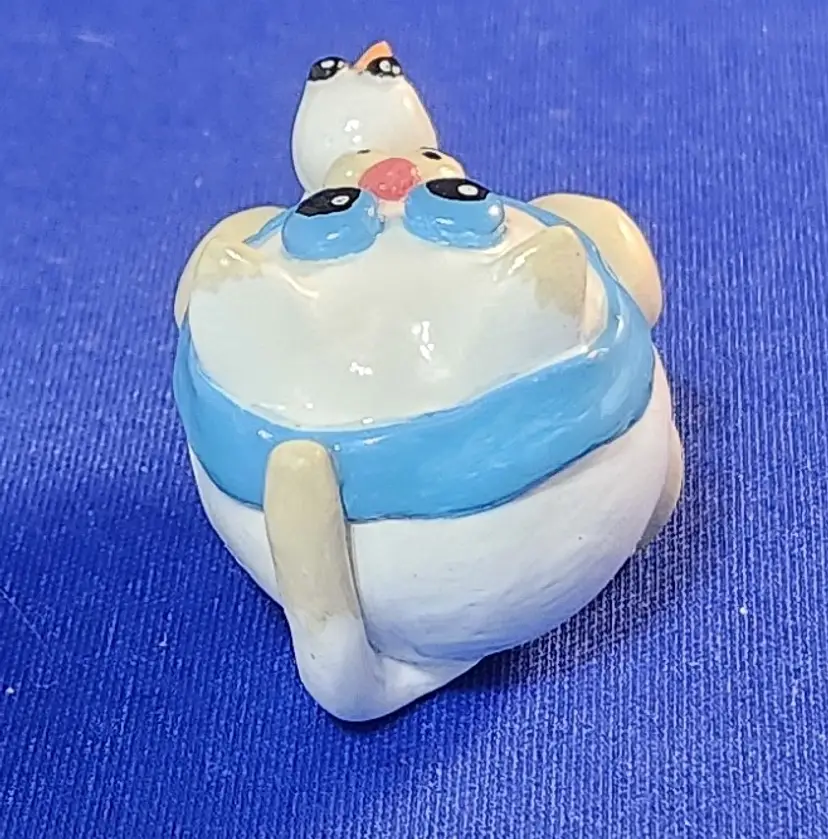 Each of Shirley’s Cats is hand-sculpted and hand-painted. No two will be exactly alike. Any “imperfections” come from the sculpting and painting process. These can include (but not limited to) paint splatters, small divots and pits, and/or rough patches.
