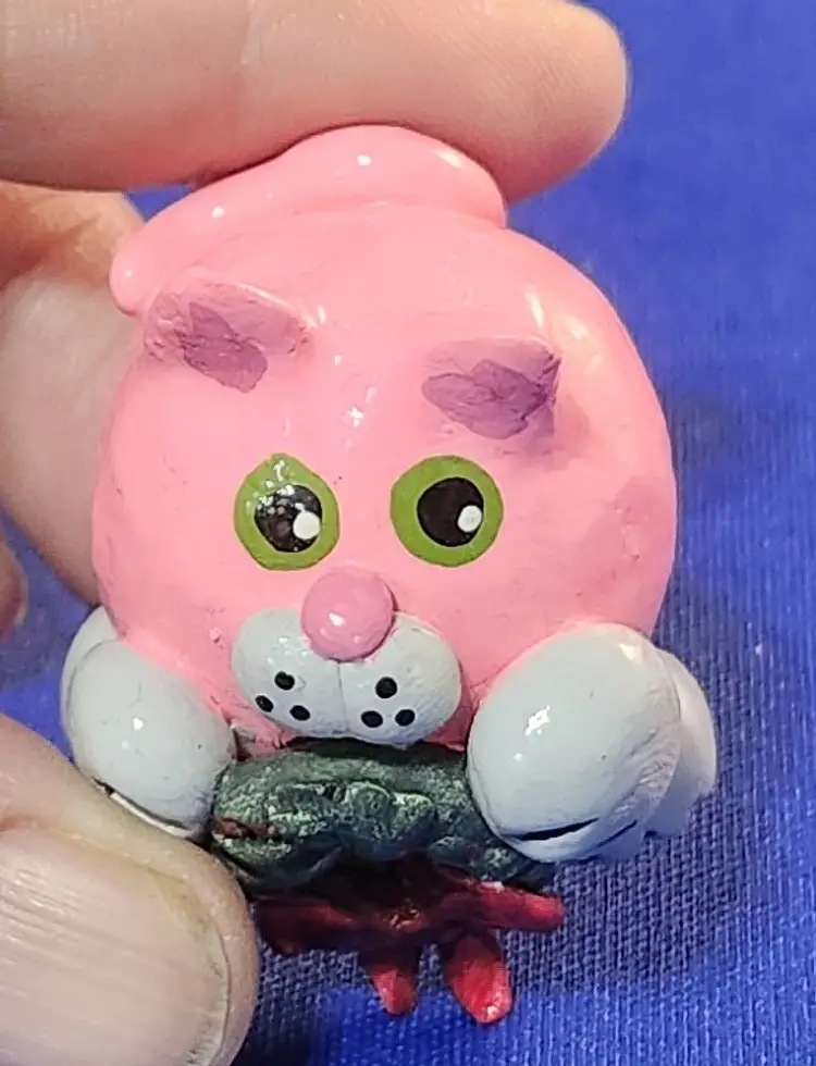 Each of Shirley’s Cats is hand-sculpted and hand-painted. No two will be exactly alike. Any “imperfections” come from the sculpting and painting process. These can include (but not limited to) paint splatters, small divots and pits, and/or rough patches.