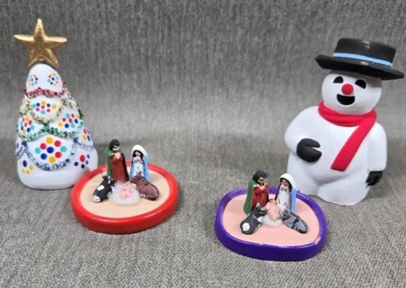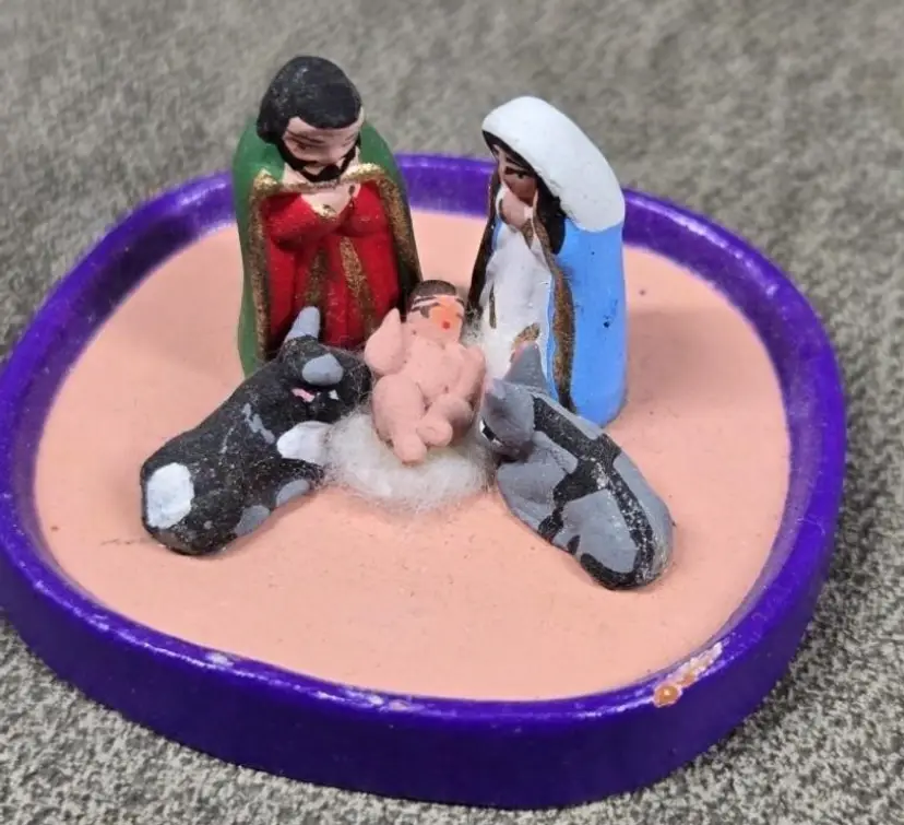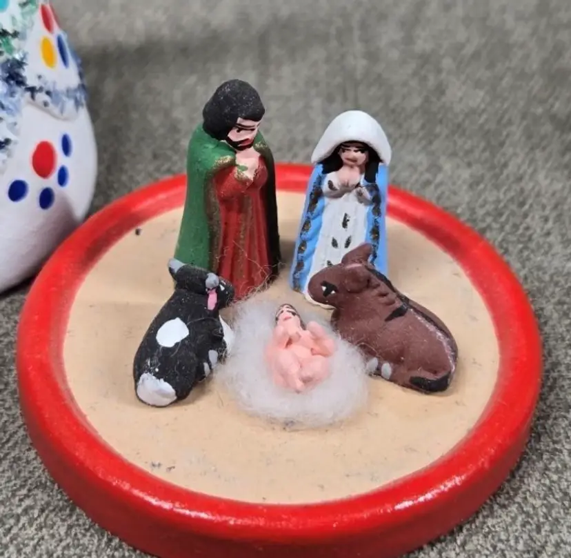 2 miniature covered nativity scenes made in El Salvador and Belize.