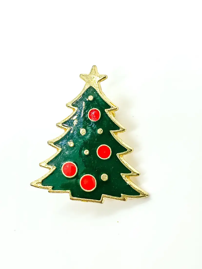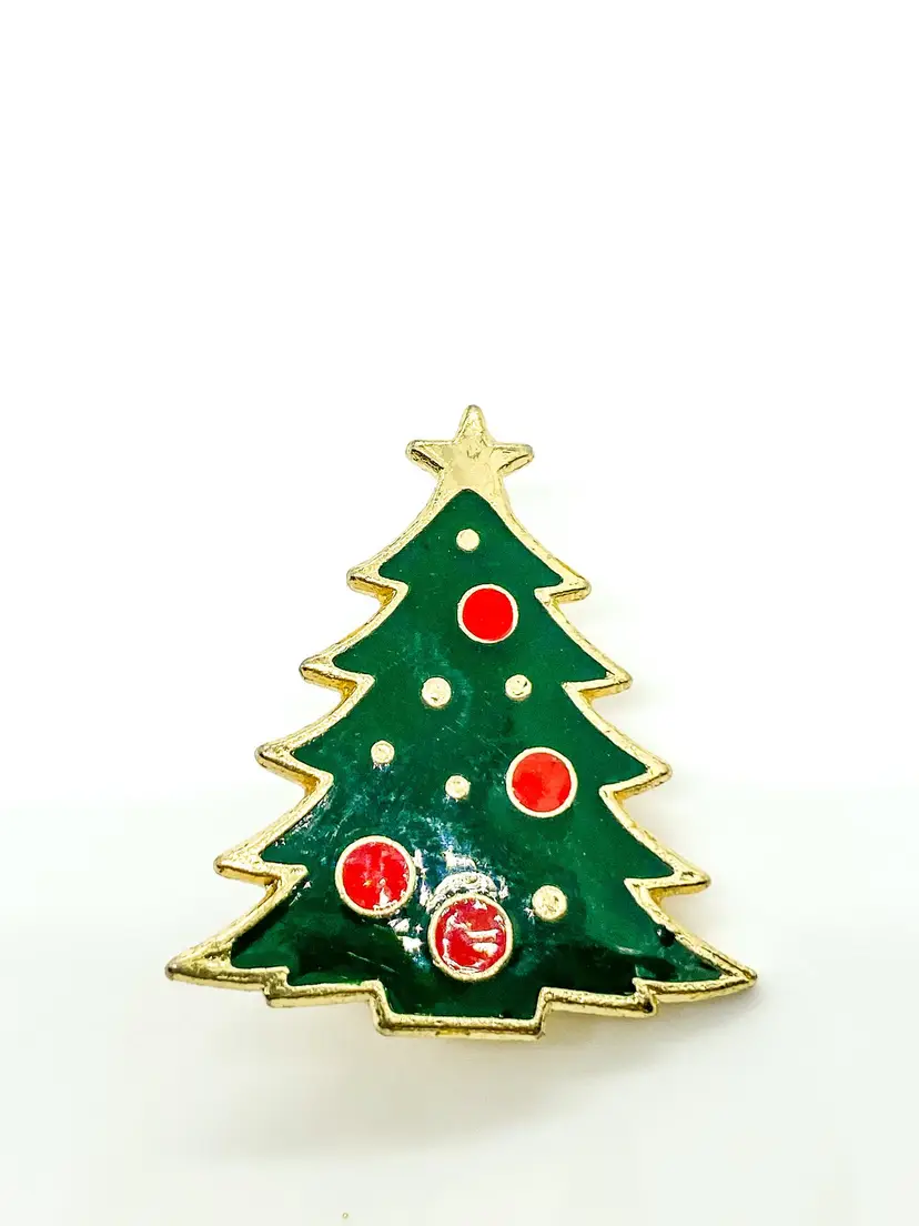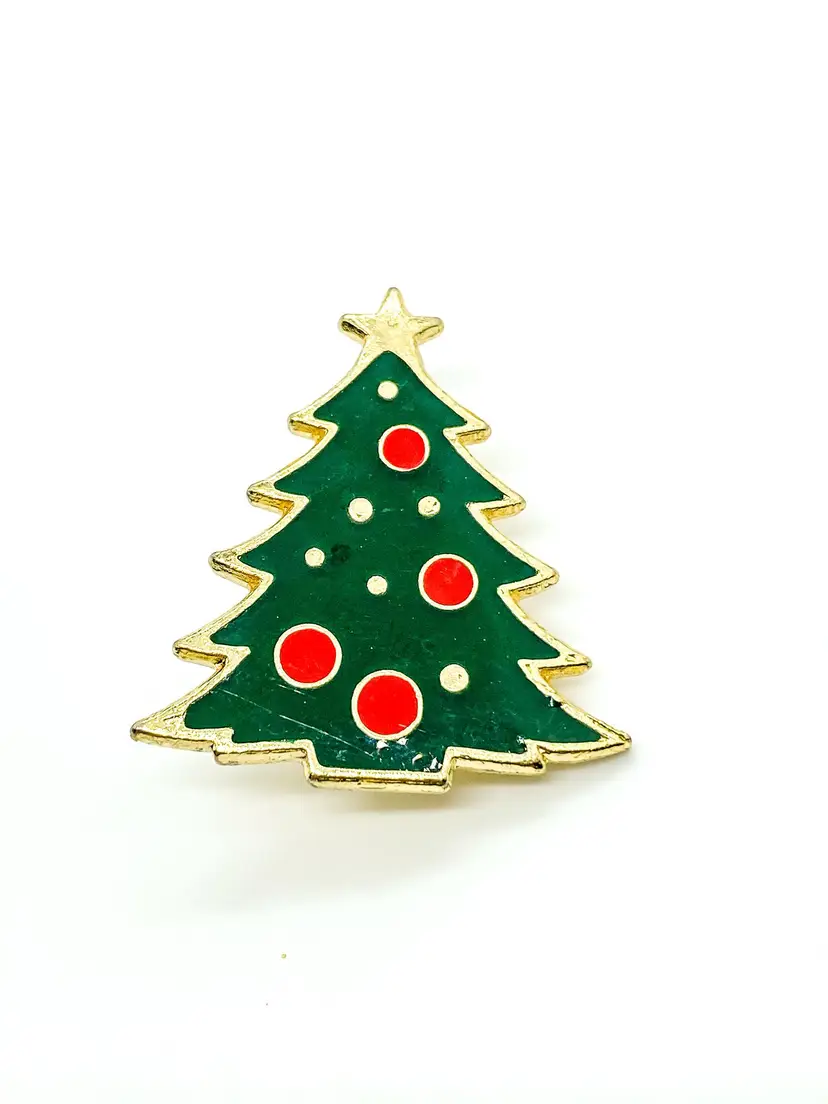 Vintage Christmas Tree Brooch Pin Enamel Marked Korea 1.25". Pre-owned, vintage, some signs of wear Approximately 1.25 in Gold tone Enamel Marked "Korea" on the back See photos for complete description and/or dimensions