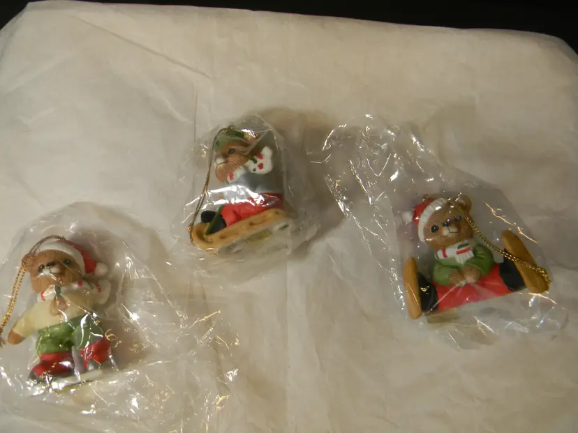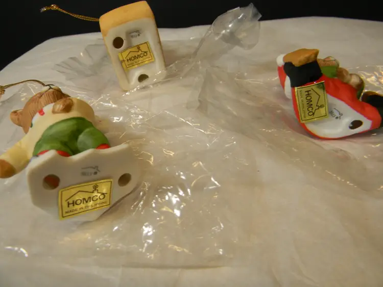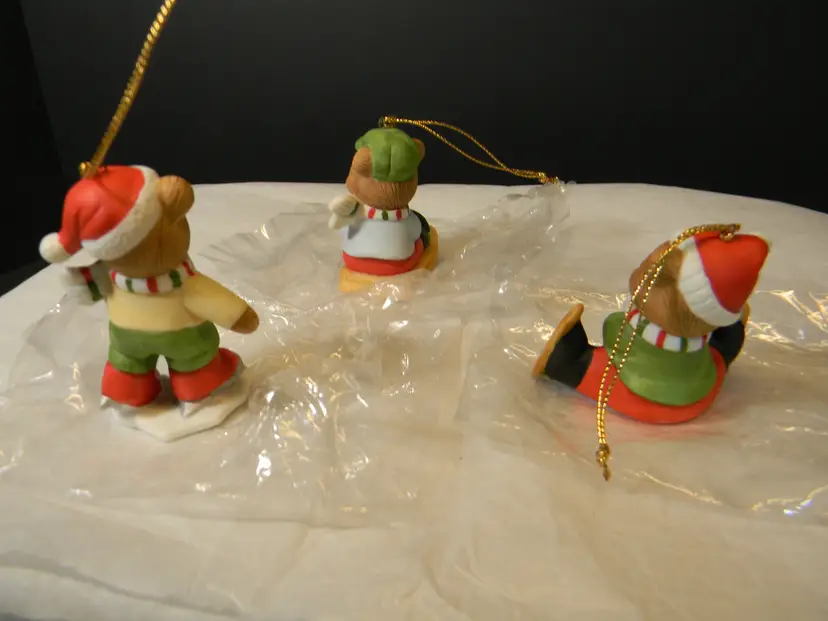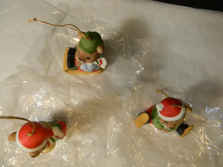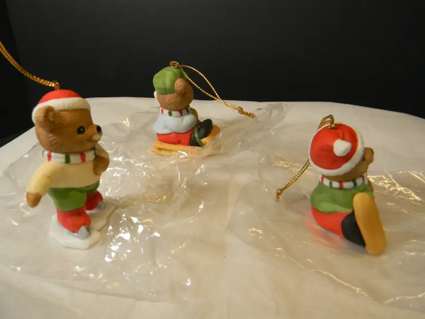 Set of 3 Bear tree ornaments by Homco no chips or cracks still in their original packing New