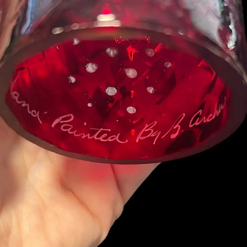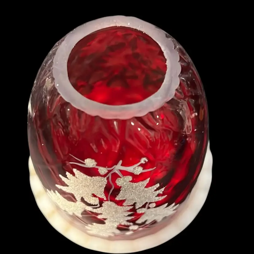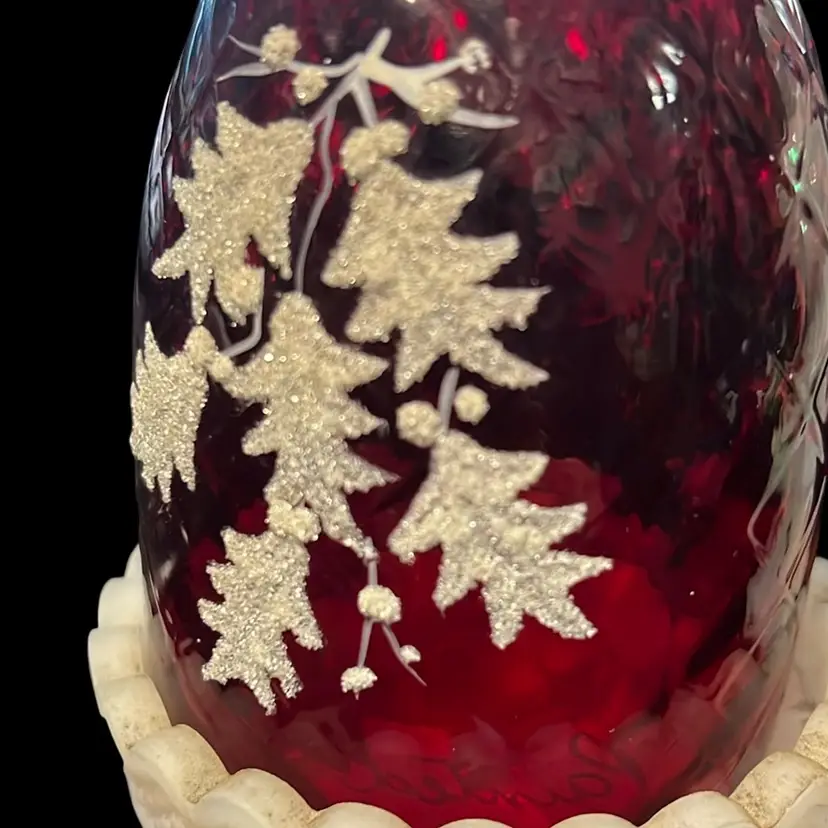 Christmas, Vintage Fenton Fairy Lamp 2 Pc, Stamped Signed ruby red And White Frit holly and berry decoration.