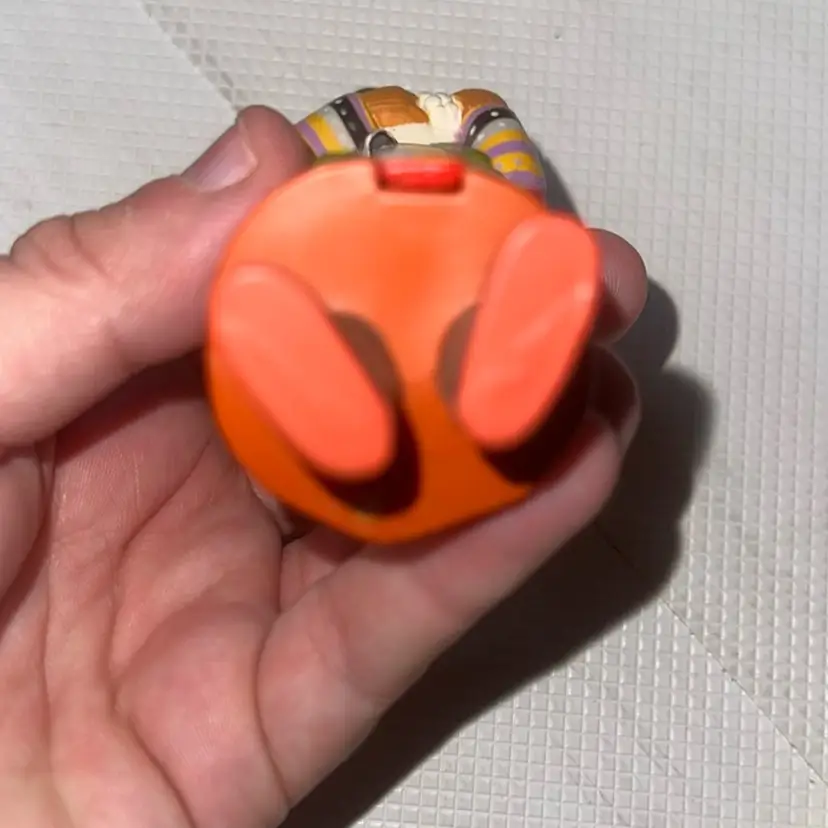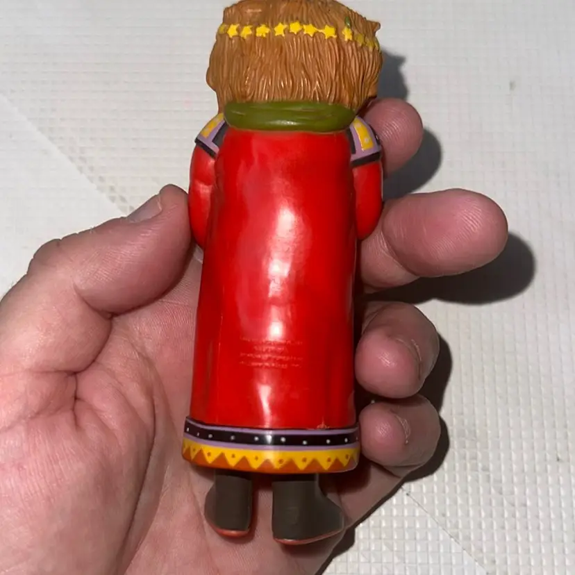Measured at 5” tall on the back of its head there is a green thing not if a chipped or something else