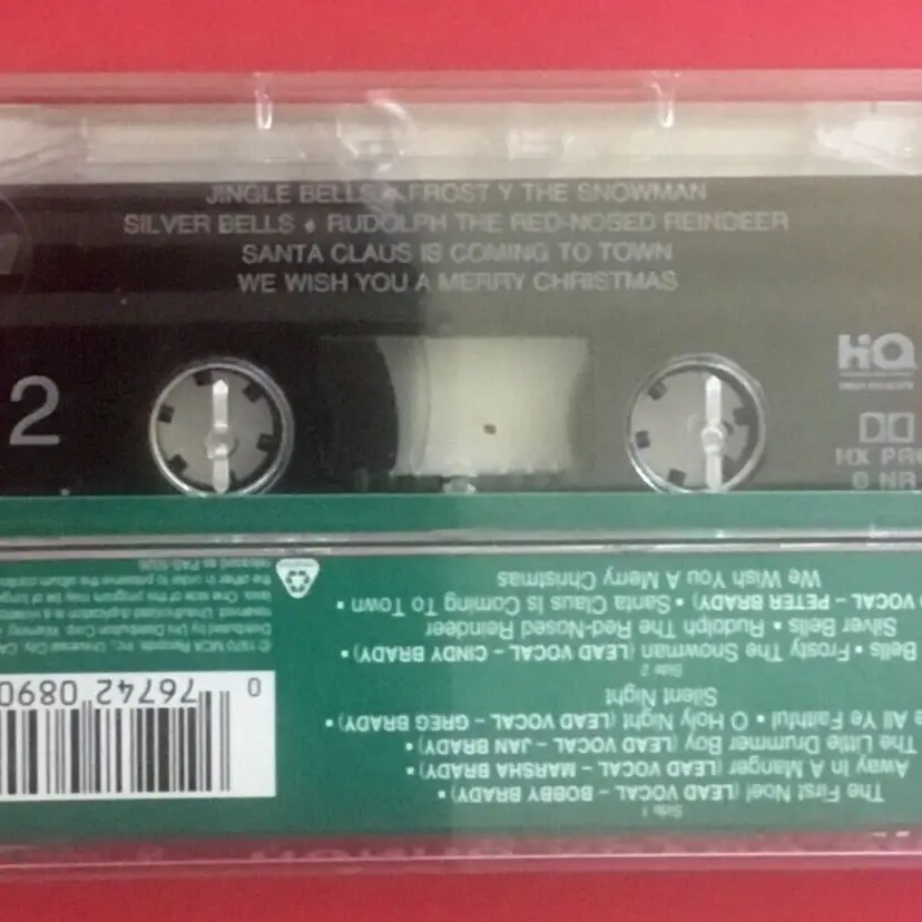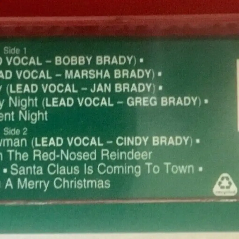 Get into the holiday spirit with this vintage cassette tape featuring The Brady Bunch singing Christmas classics. The cassette is in near mint condition and comes in a standard jewel case. The green color and bubblegum pop style of the music make for a fun and festive addition to any Christmas collection. Catalog number MCAC 20890 and released in 1995, this cassette is a must-have for fans of 70s pop and oldies music. Celebrate the season with The Brady Bunch and their timeless holiday tunes.