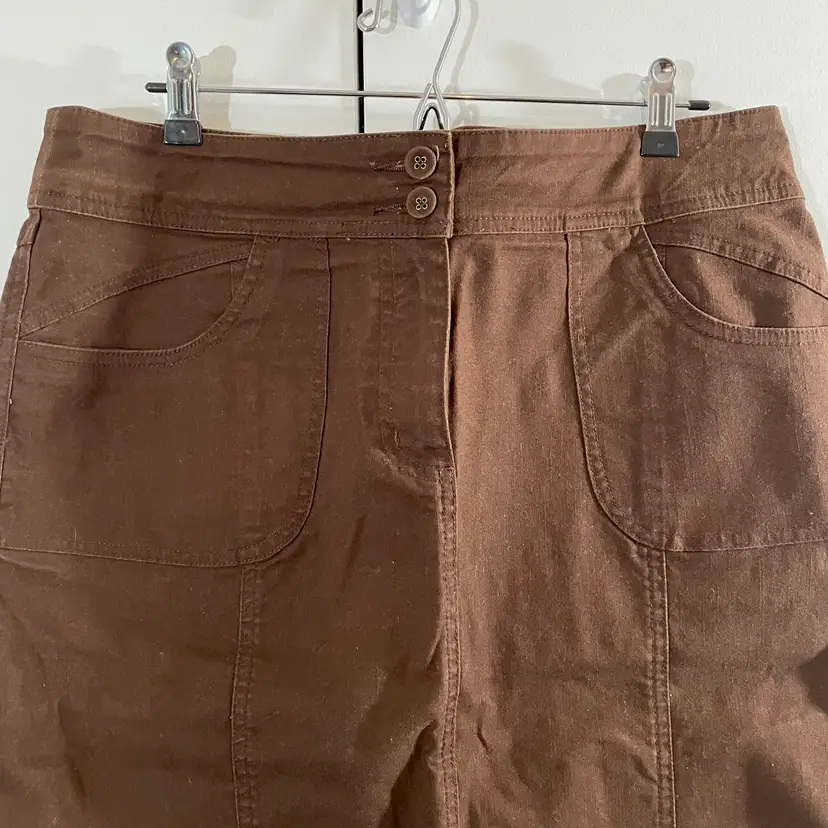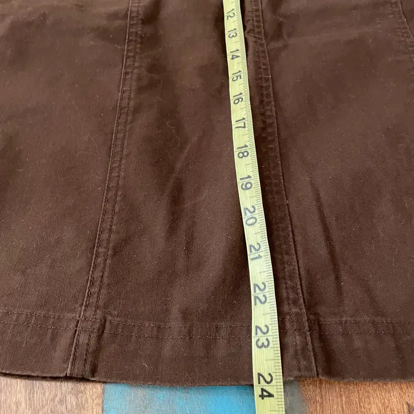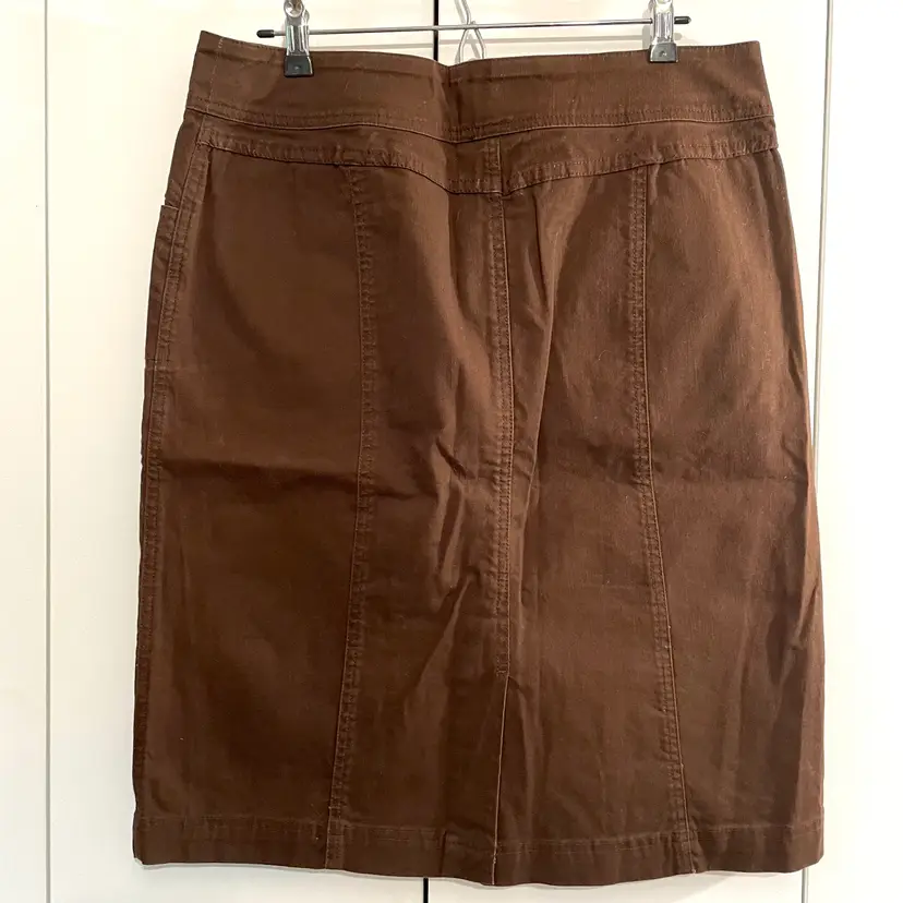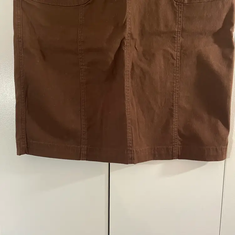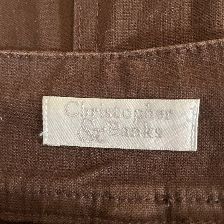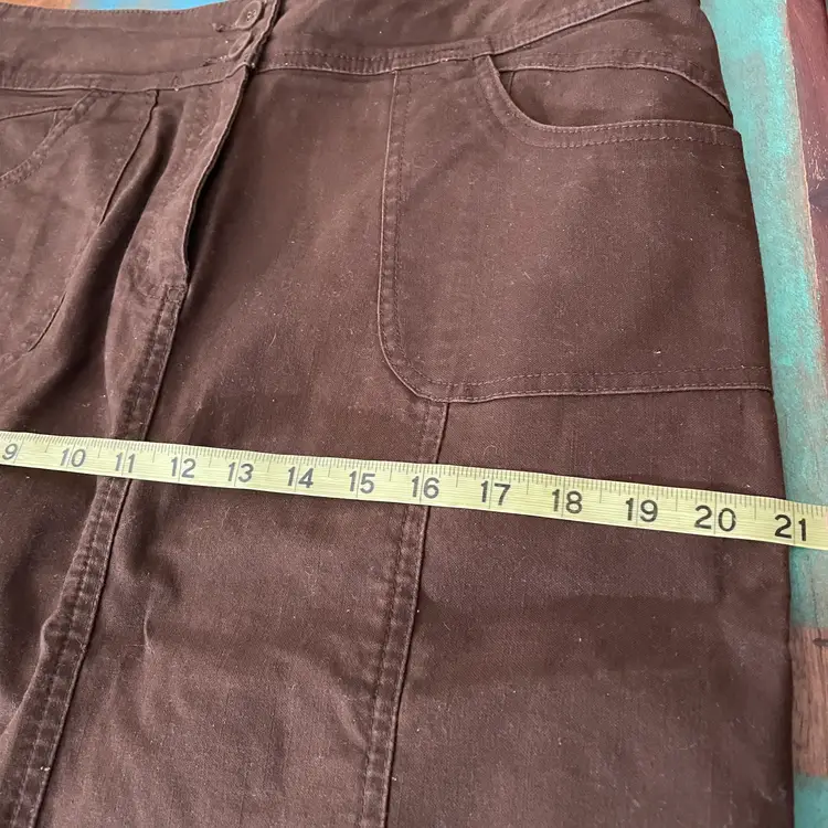 Women's Christopher & Banks Twill Skirt Condition: Gently worn. No rips, holes, or stains. Check out and zoom in on the photos for more details. Color: Chocolate Brown Size: 12 Measurements taken with item laid flat *Waist: (across the waistband) 16.75" *Hips: (1/3 way down) 21" *Length (from waistband to bottom hem) 24" Features: Covered buttons, zip / button closure, pockets, rear slit. Stretch, comfy casual. 99% cotton, 1% spandex. Machine washable.