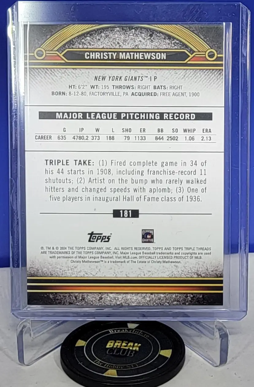 Christy Mathewson HOF 2024 Topps Triple Threads No. 181 Pink /125 New York Giants