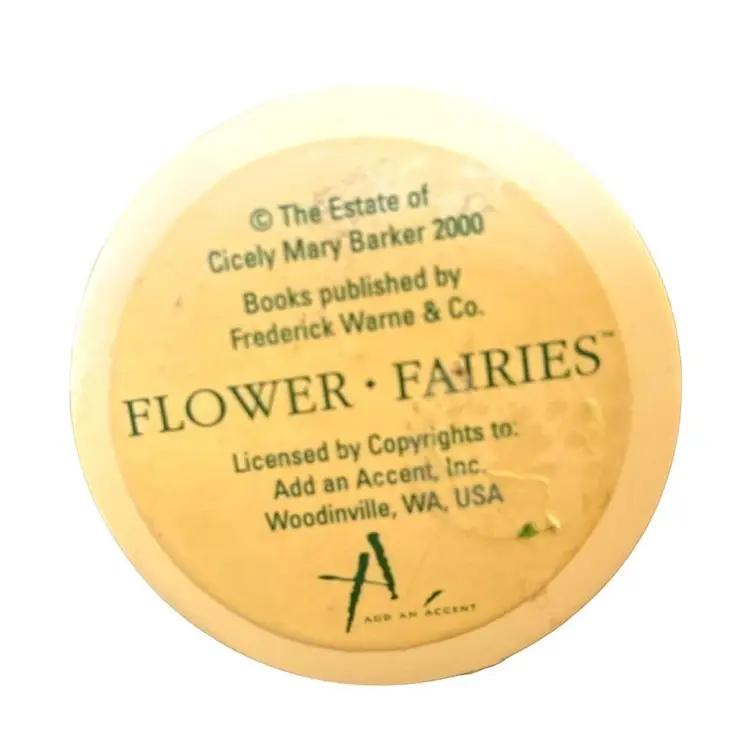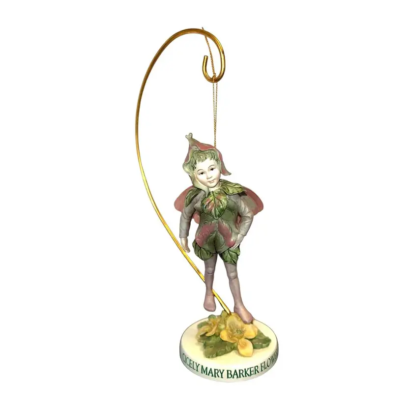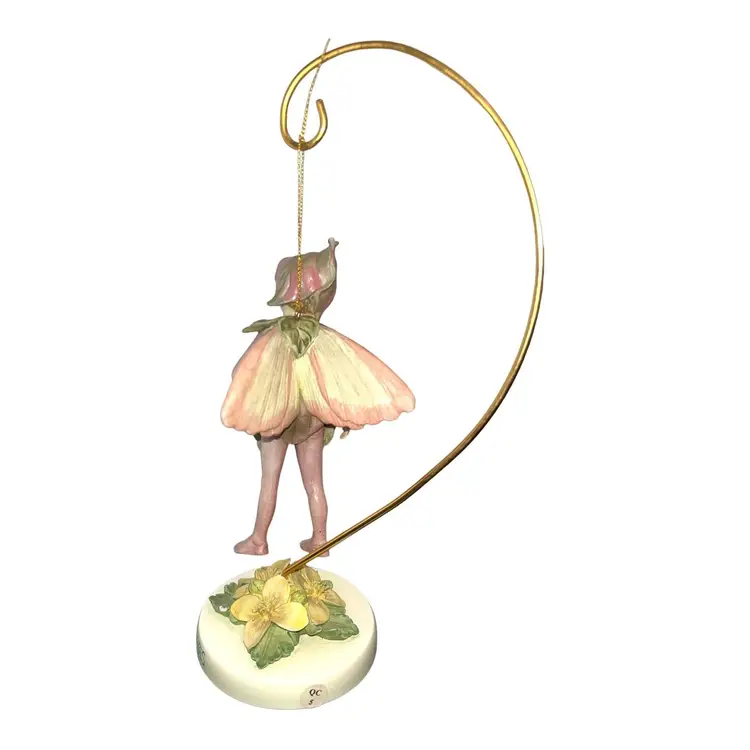 Miniature Cicely Mary Barker, Dogwood Flower Fairy Collectible. NO BOX. Includes Dogwood Fairy and Stand. The fairy is in beautiful condition. The stand has a flea bite on one of the petals. Dated 2000. Retired. Figurine is roughly 4" Tall x 2 1/2" Wide