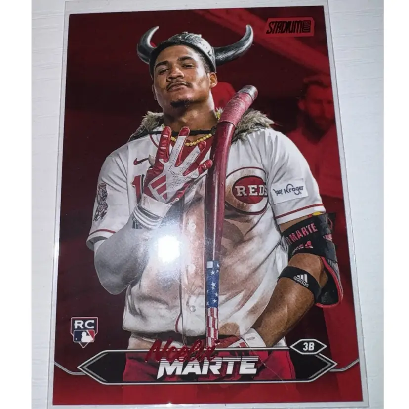 This 4 card lot includes: Chase Burns 2025 Topps Drafted Auto /50 Elly De La Cruz 2024 Topps Holiday rc Noelvi Marte 2024 Stadium Club Red Sonny Gray 2021 Topps Redux