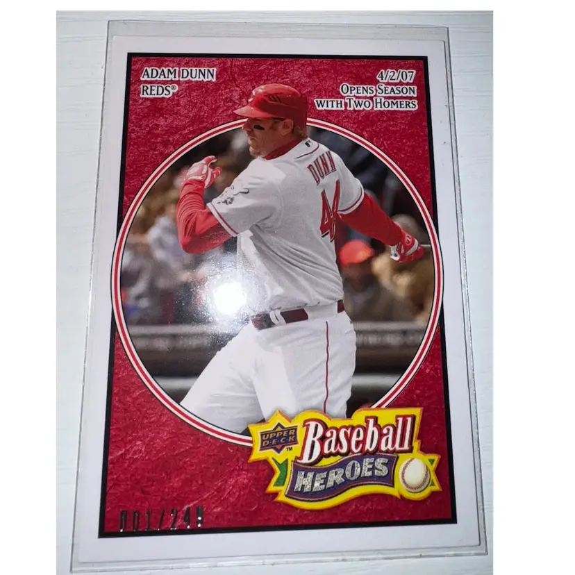 This 6 Card Lot Includes: Noelvi Marte 2024 Stadium Club Red Foil Adam Dunn 2008 Baseball Heroes Red /249 Ryan Hendrix 2021 Update Rainbow Foil Jonathan India 2024 Topps Chrome Refractor Blake Dunn 2025 Topps Chrome Prism Sonny Gray 2021 Topps 1952 Redux Refractor