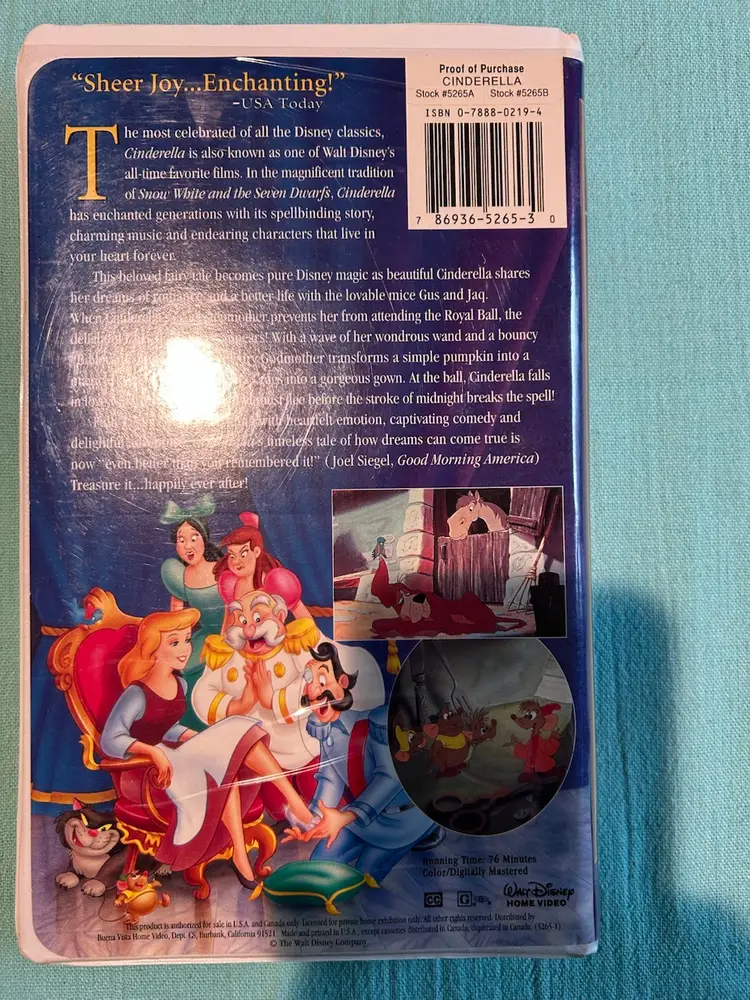 Relive the magic of your childhood with this classic Disney Masterpiece VHS tape. Featuring the beloved character Cinderella, this animated and animated-enhanced film is a must-have for any fan of the fantasy genre. The tape is in the NTSC signal standard and comes with English language, making it accessible to a wide audience. This item is perfect for collectors or those who want to relive the nostalgia of classic Disney movies. It is not a former rental and is rated G, making it suitable for all ages. Add this piece of cinematic history to your collection today and enjoy the timeless magic of Cinderella.