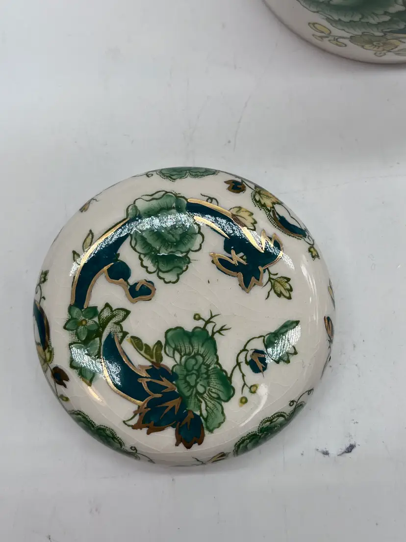 The pattern is called Chartreuse, and the chinoiserie floral print wraps round the jar and lid, with beautiful gold detail work, done by hand. It’s a fine piece to add to a ginger jar collection, or simply for its composition, function, and beauty.