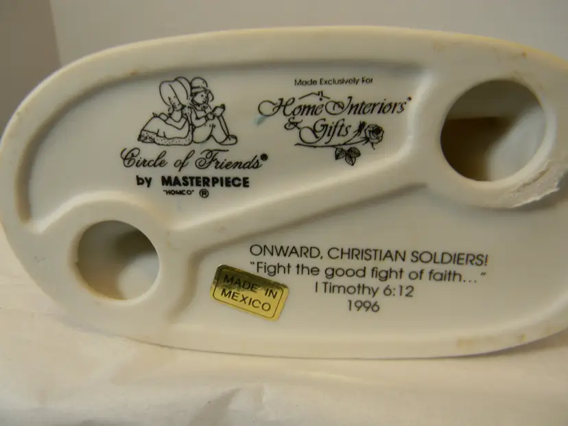 Circle of Friends Collection by Masterpiece Onward Christian Soldiers 1996 Made exclusively for Home Interiors gifts great piece No chips or cracks used condition No Stains No Box or Paperwork **See all photos before purchasing Measurements are in the photos