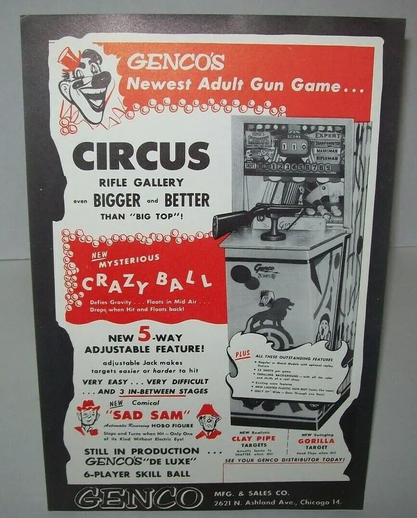 Maker: Genco Title: Circus Arcade: Flyer Modified Item: No Country/Region of Manufacture: United States Time Period Manufactured: 1940-59
