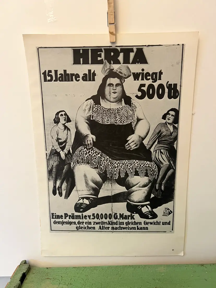 Titled: Herta- 500lb woman 1970s reprint of a 1923 lithograph. Original printer: Henrich Barkow 11" x 16"