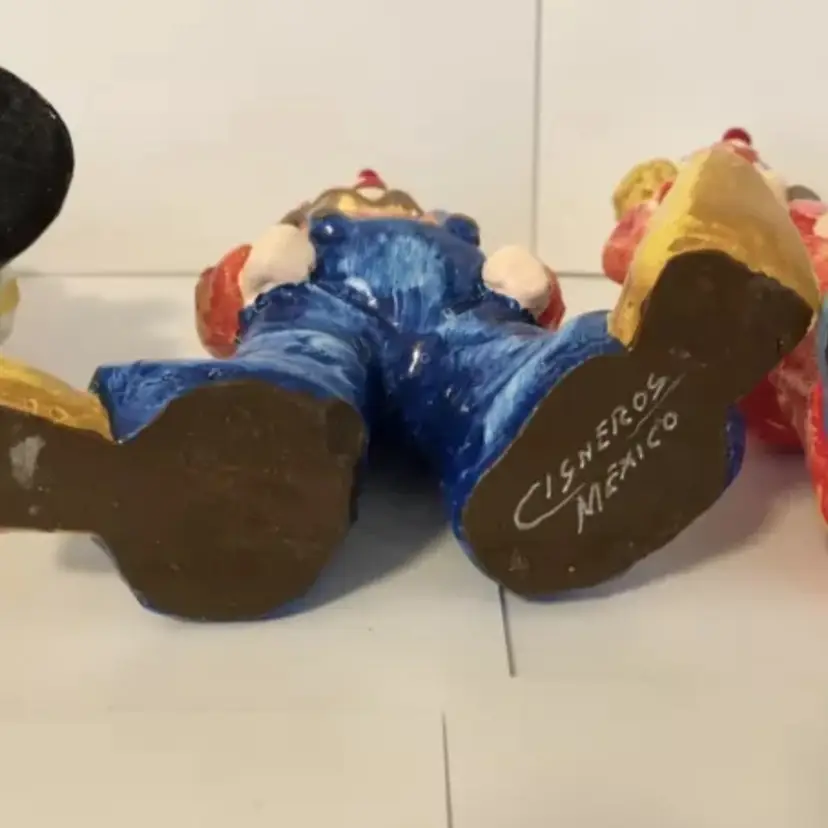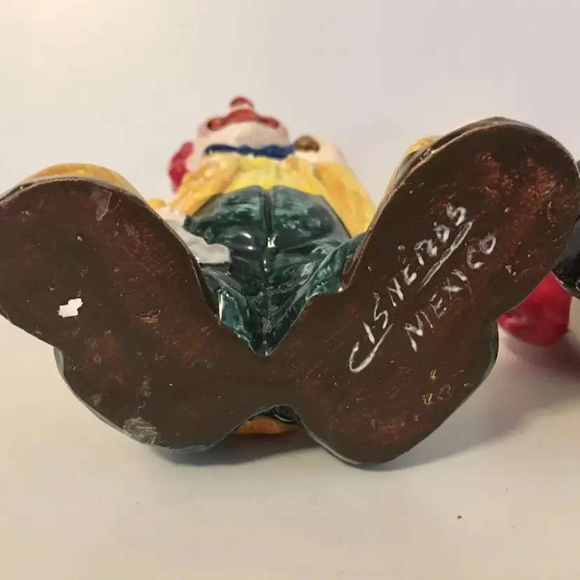 Collectible Cisneros clowns from Mexico. Signed on bottom. Some wear to cold paint. Clown with black hat has a piece of cold paint missing on back. No chips or cracks. Please review pictures closely, and msg me with any questions. Check out my other listings for more unique items. Thanks for looking!