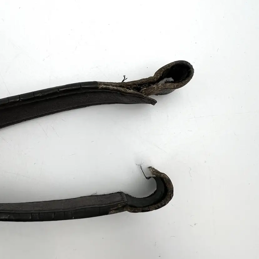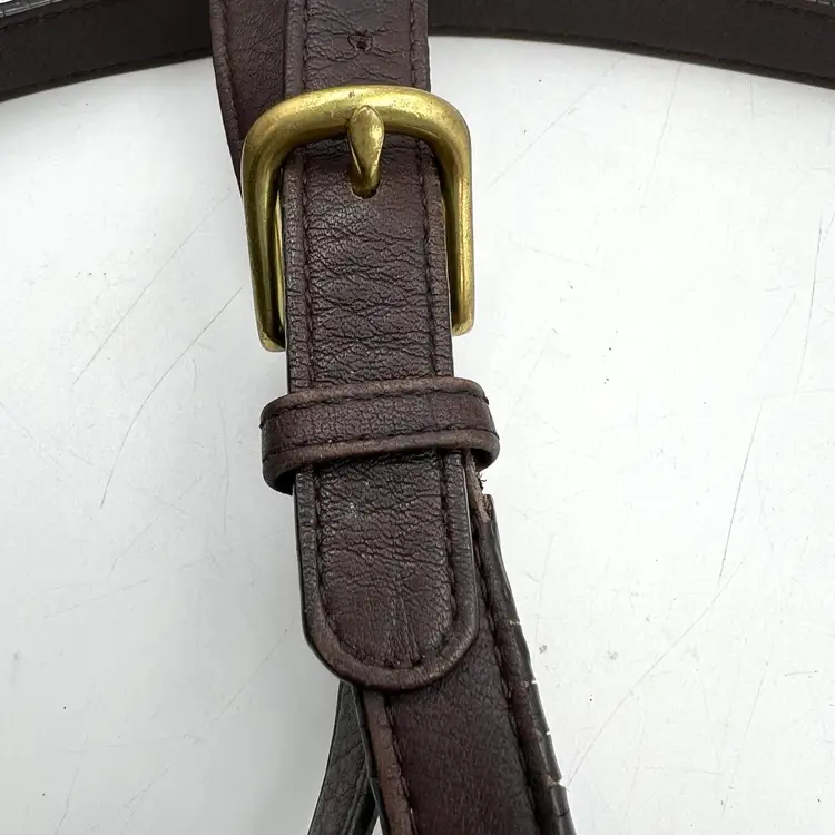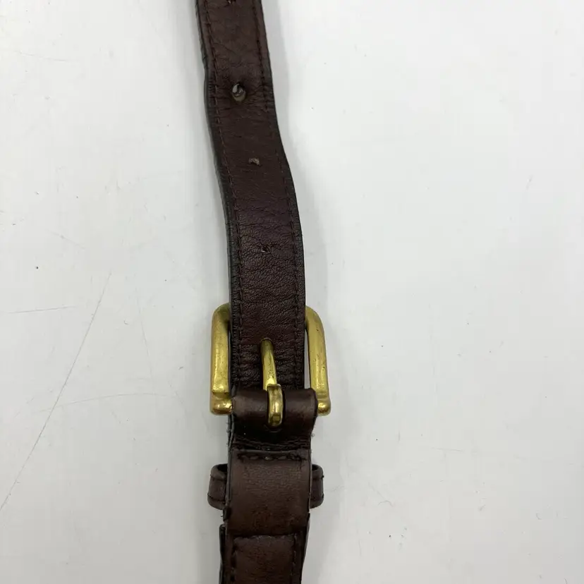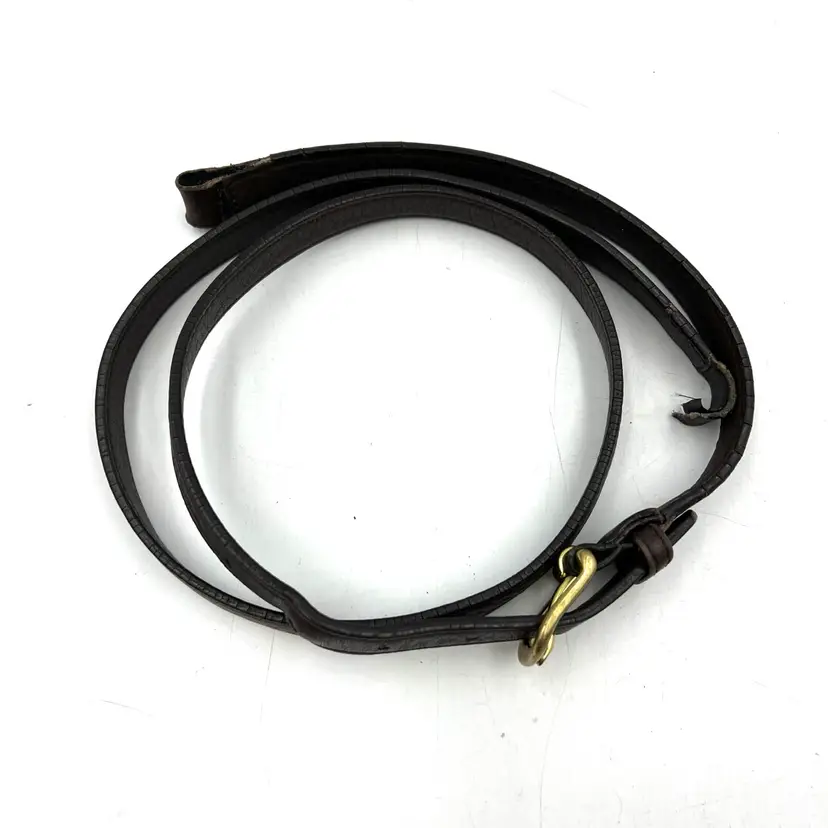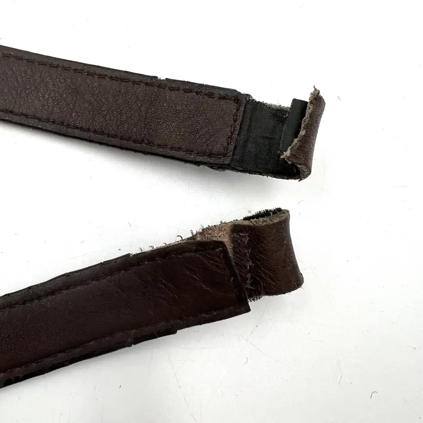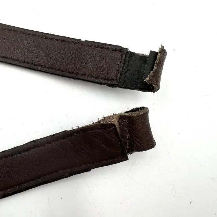 Hardware and strap are preowned and vintage. Please expect it to show signs of use like fading, creasing, cracked edge paint & patina. Leather has been cleaned and conditioned. Ends are open and can be sewn back together for attachment.