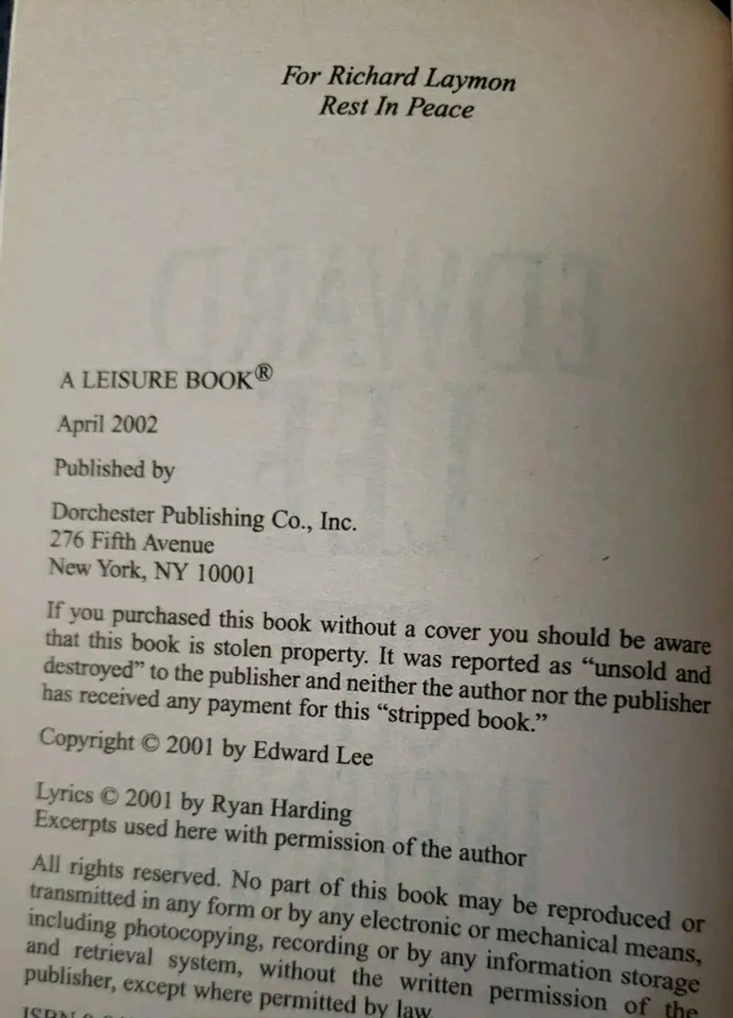 An out of print horror trade paperback from the shuttered Dorchester Press/Leisure Books.