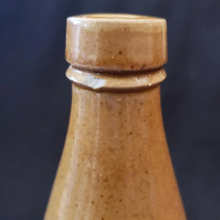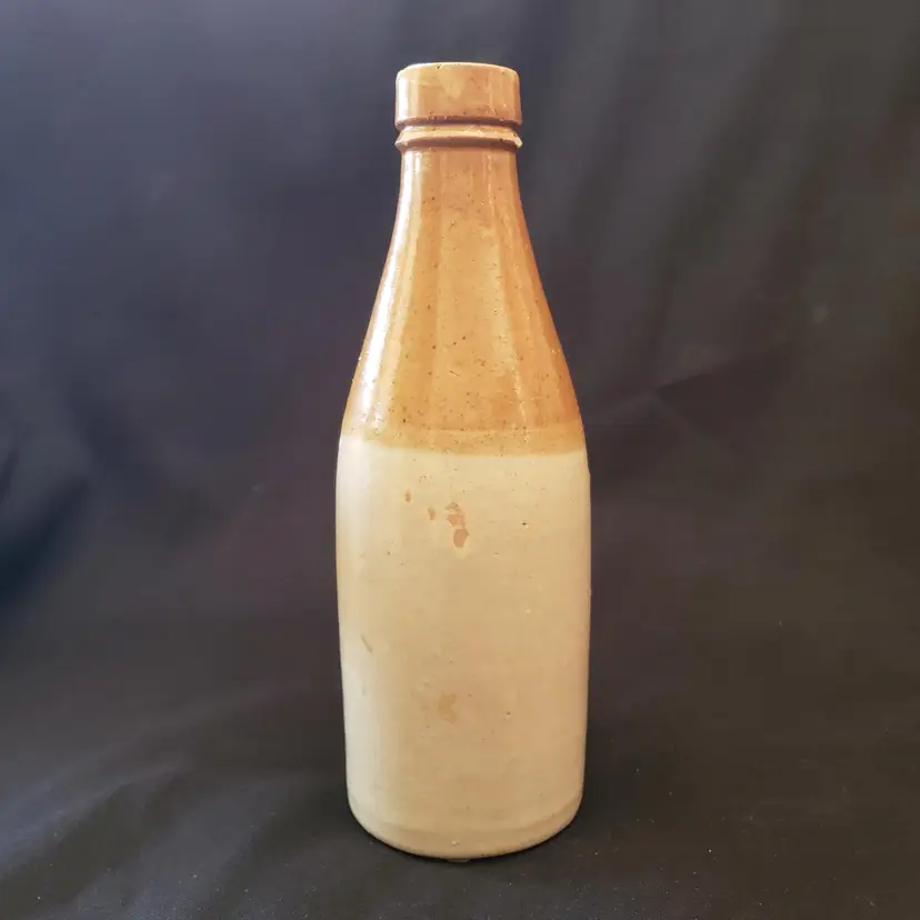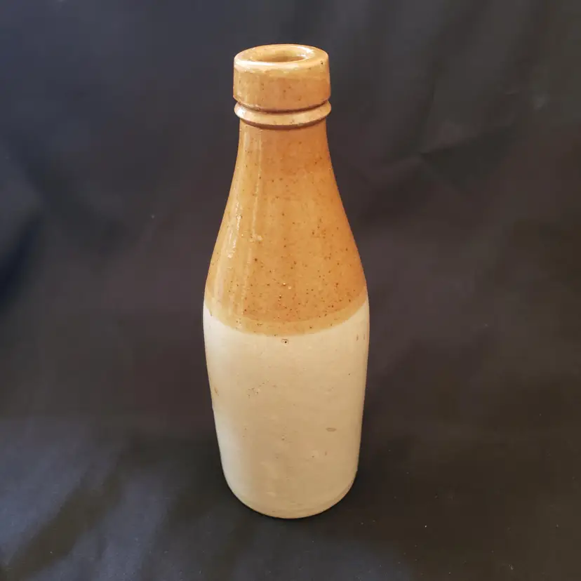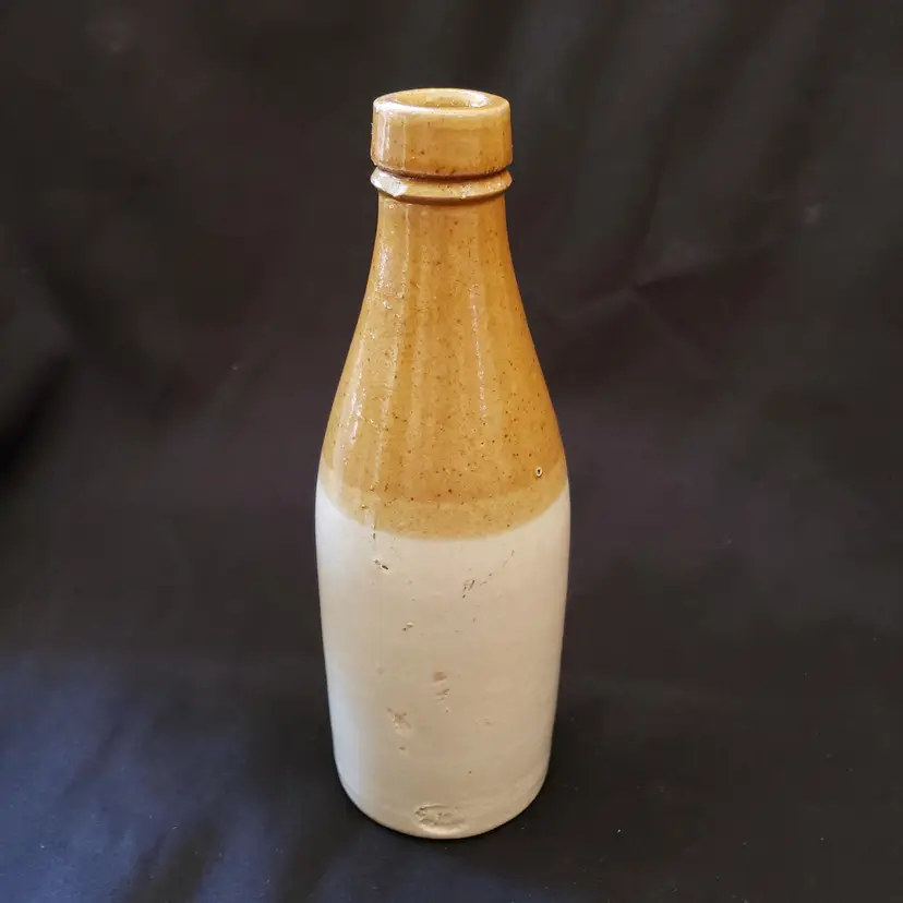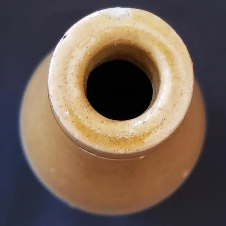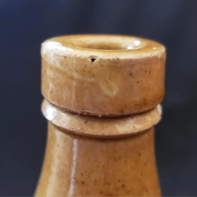 Civil War Ginger Beer Bottle Ceramic 8 1/2" tall Heavy Antique READ DESCRIPTION. Used condition with glaze bubble pops, chipped top, imperfect glaze, etc. Please view all the photos and read the entire item description and please ask any questions prior to purchase when possible.