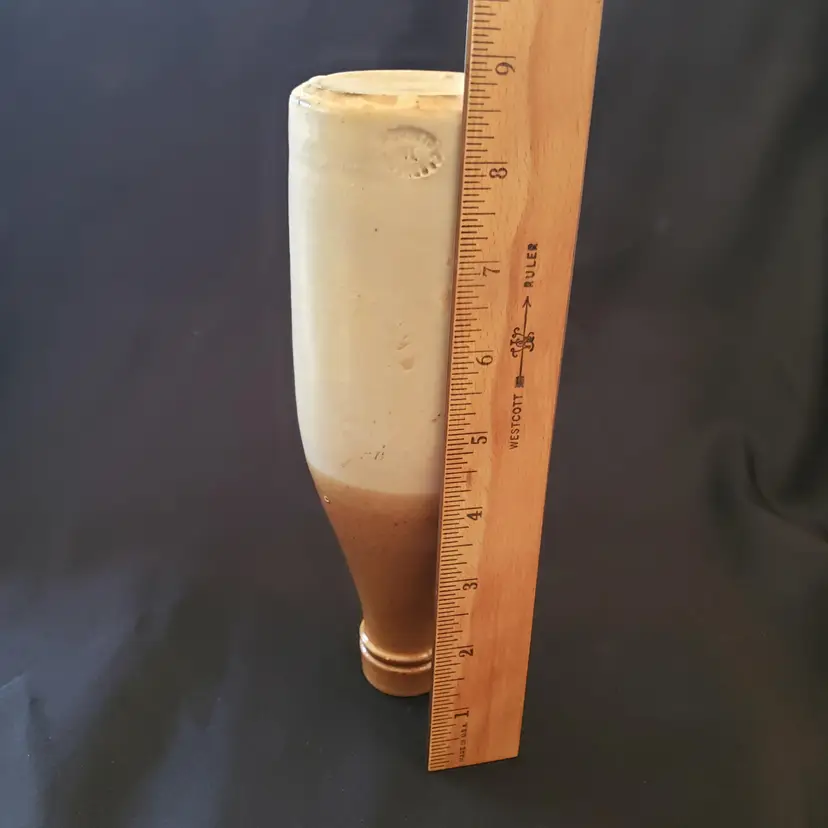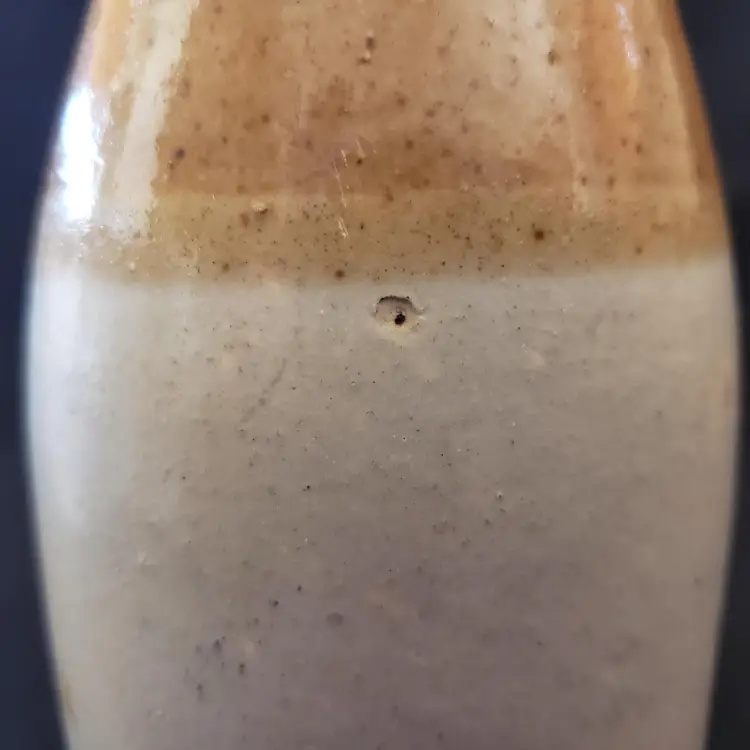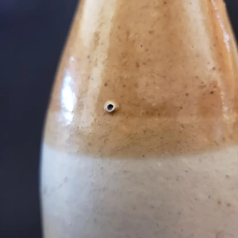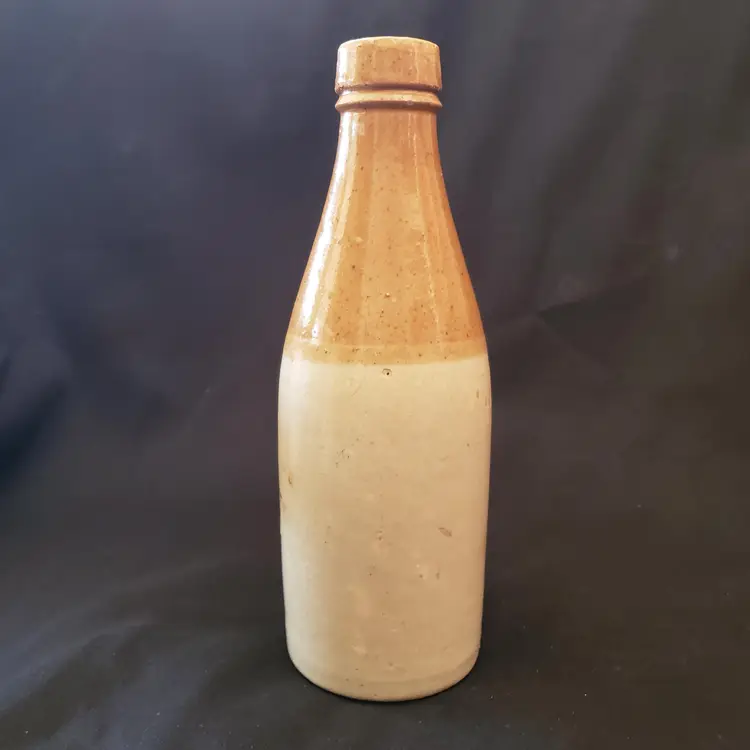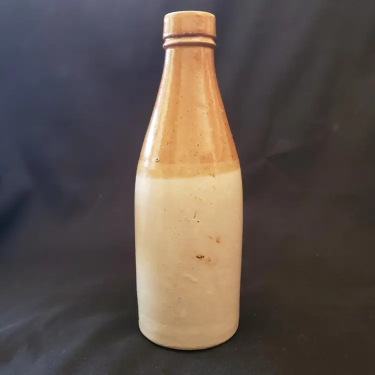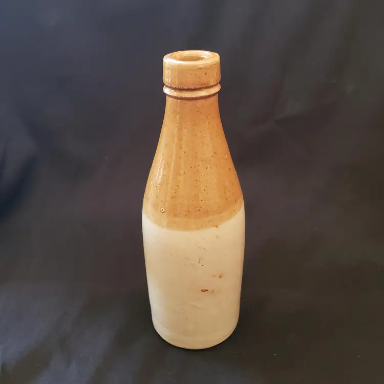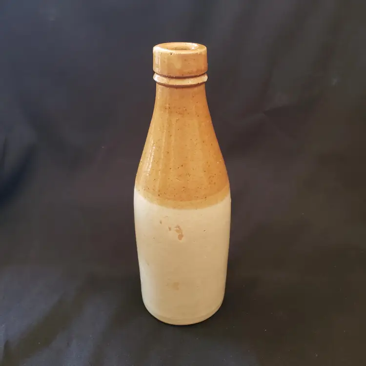 Civil War Ginger Beer Bottle Ceramic 8 1/2" tall Heavy Antique READ DESCRIPTION. Used condition with glaze bubble pops, chipped top, imperfect glaze, etc. Please view all the photos and read the entire item description and please ask any questions prior to purchase when possible.