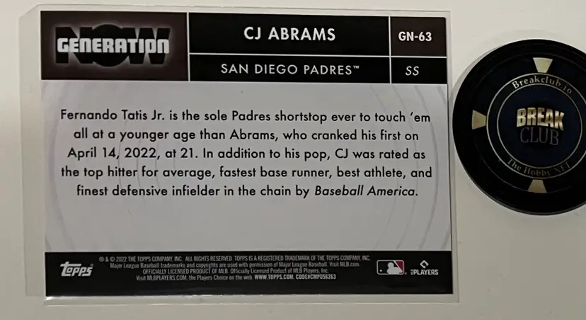2022 Topps Update rookie insert. C.J. Abrams now plays for the Washington Nationals. $1 shipping via PWE (stacks with other listings)