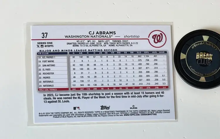 2024 Topps hanger exclusive parallel of C.J. Abrams $1 shipping via PWE (stacks with other listings)