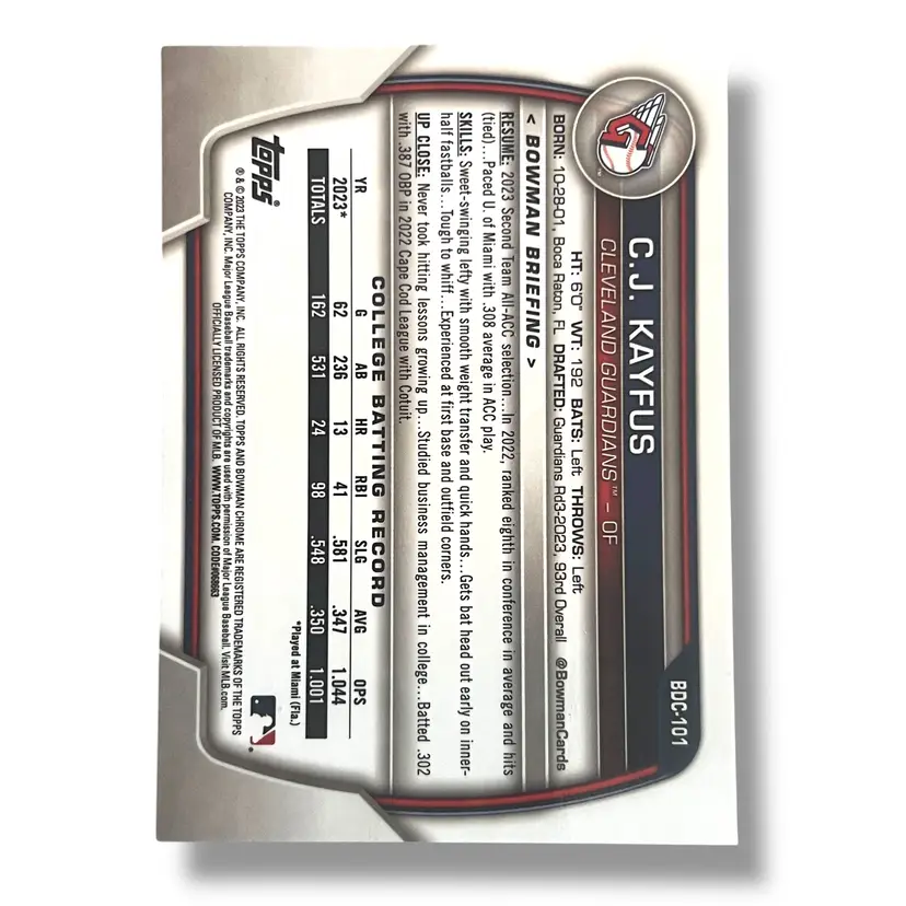 Here We Have a C.J. Kayfus 2023 Bowman Draft 1st Bowman Chrome Fuchsia Lunar Refractor 30/199