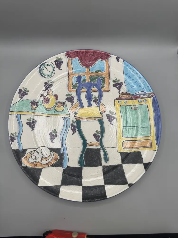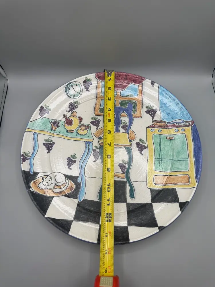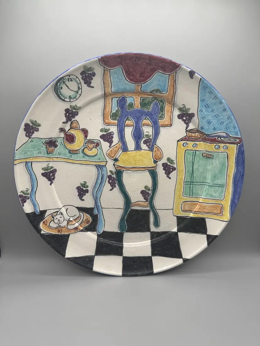 CJ Niehaus Plate Kitchen Nook Wall Hanging Handmade Pottery Painted Signed