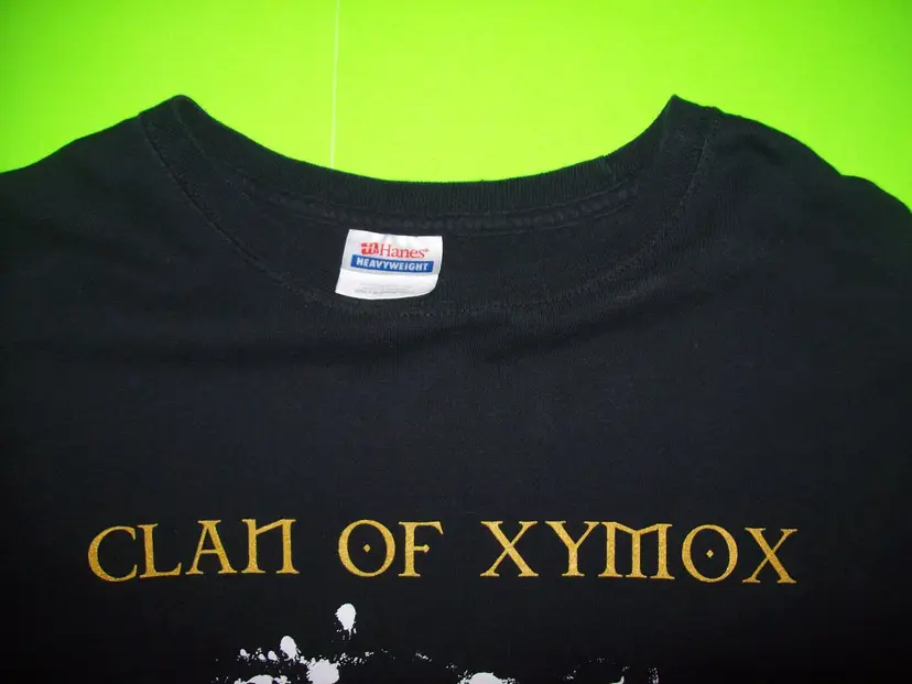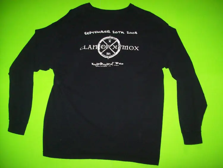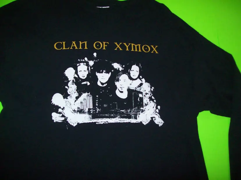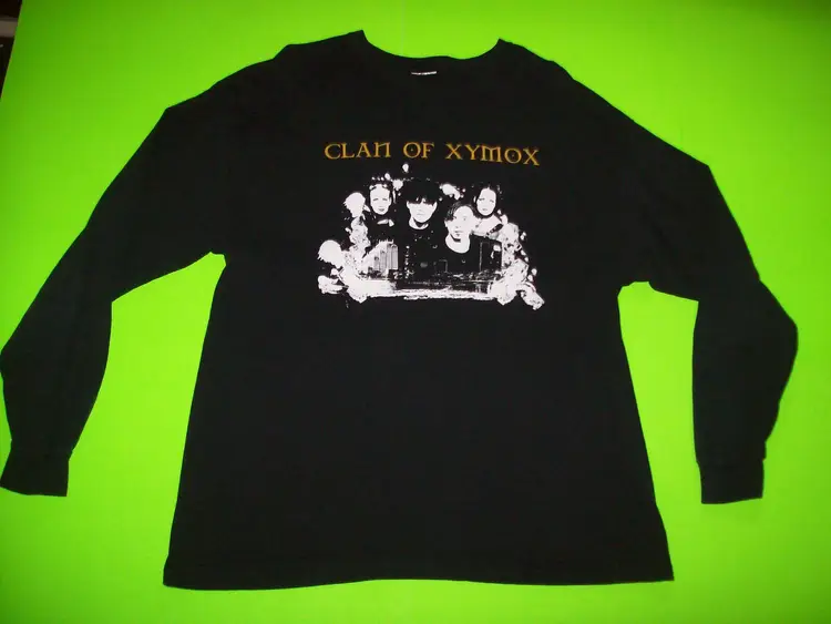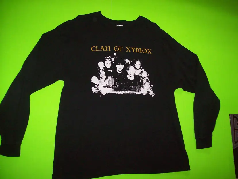 Features: Vintage Department: Unisex Adults Personalize: No Handmade: No Pattern: Print Season: Fall, Winter Vintage: Yes Size: XL Country/Region of Manufacture: El Salvador Material: Cotton Accents: Gothic Size Type: Regular Character: Clan Of Xymox Neckline: Collared Sleeve Length: Long Sleeve Fabric Type: Cotton Pre Shrunk Brand: Hanes Color: Black Graphic Print: Yes Theme: Punk, Band, Music, Halloween, Gothic Character Family: Clan Of Xymox Fit: Classic Type: T-Shirt