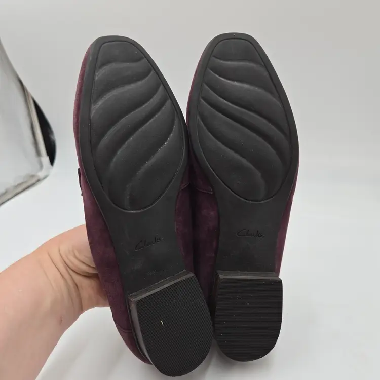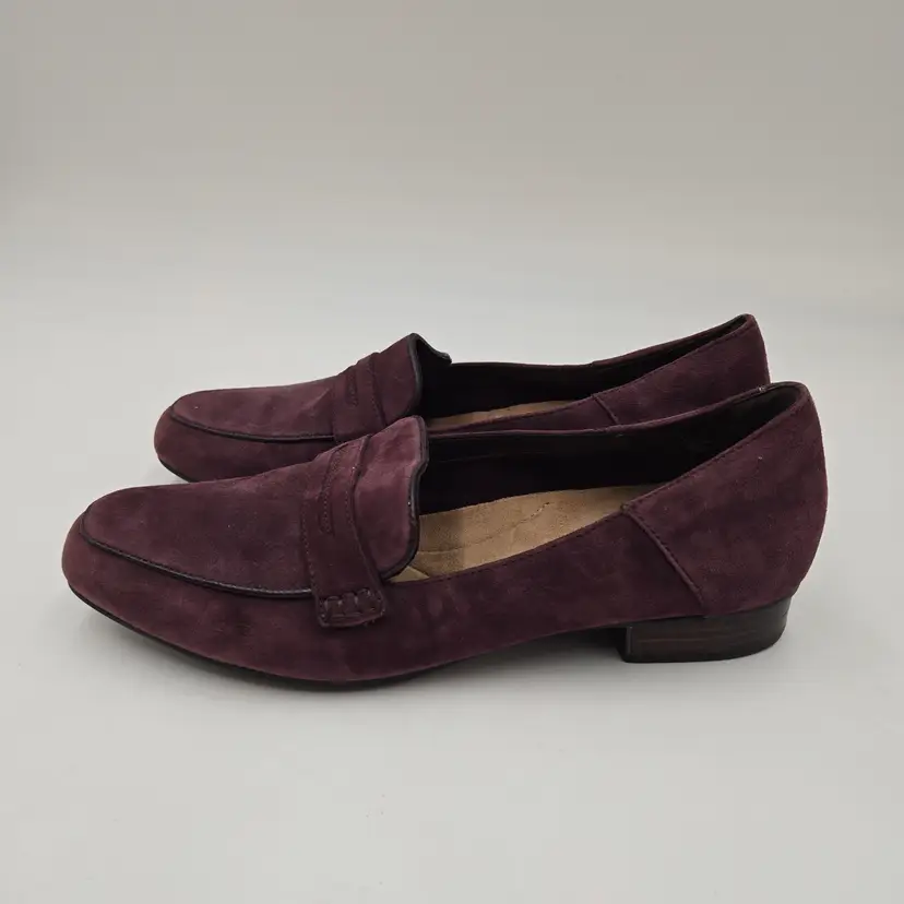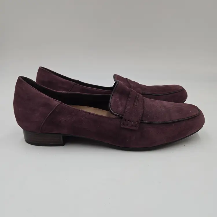 Clarks Artisan Suede Aubergine Purple Keesha Cora Penny Loafers Sz 11 M Comfort
