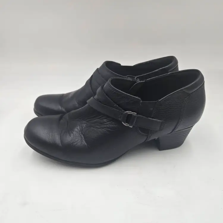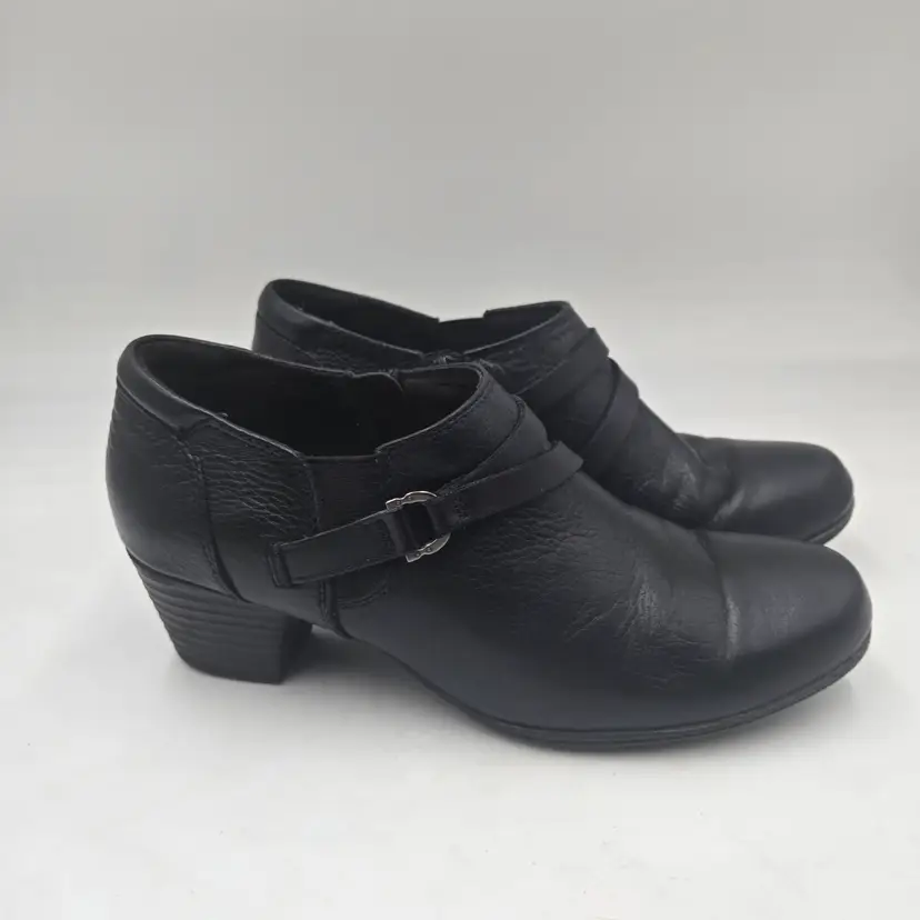 Clarks Collection Valerie 2 May Black Leather Ankle Boot Size 8.5 M Comfort Clog
