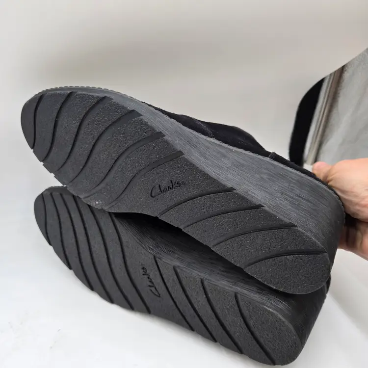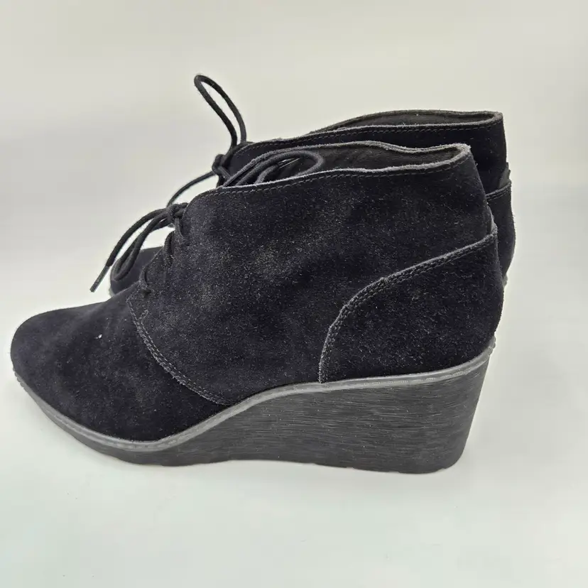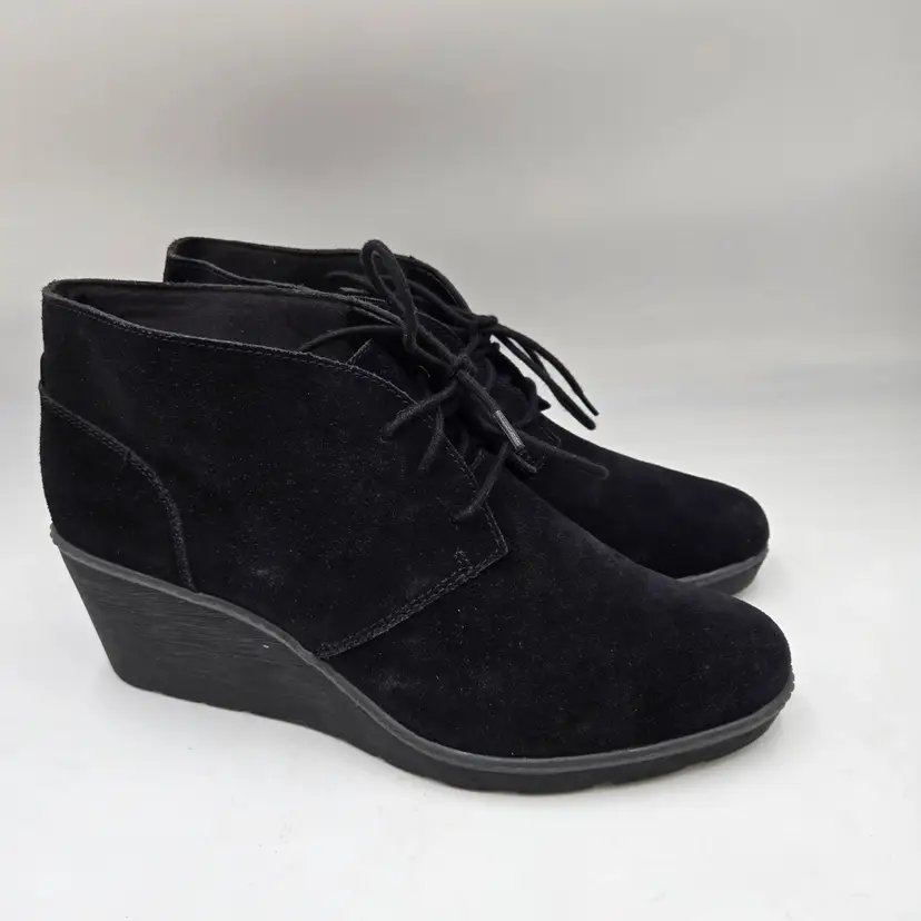 Clarks Collection Womens Wedge Ankle Booties Black Suede Size 11 Wide Lace Up